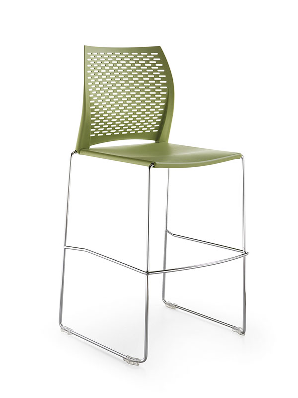Сиденье и спинка из полипропилена. Сиденье фиксируется на каркасе с помощью подседельной крышки, которая крепится к сиденью 9-ю саморезами. Подседельная крышка закрывает нижнюю часть каркаса и защищает, при штабелировании, нижний стул от повреждений. Спинка надевается на штыри каркаса и фиксируется на нем специальными выступами сидения.