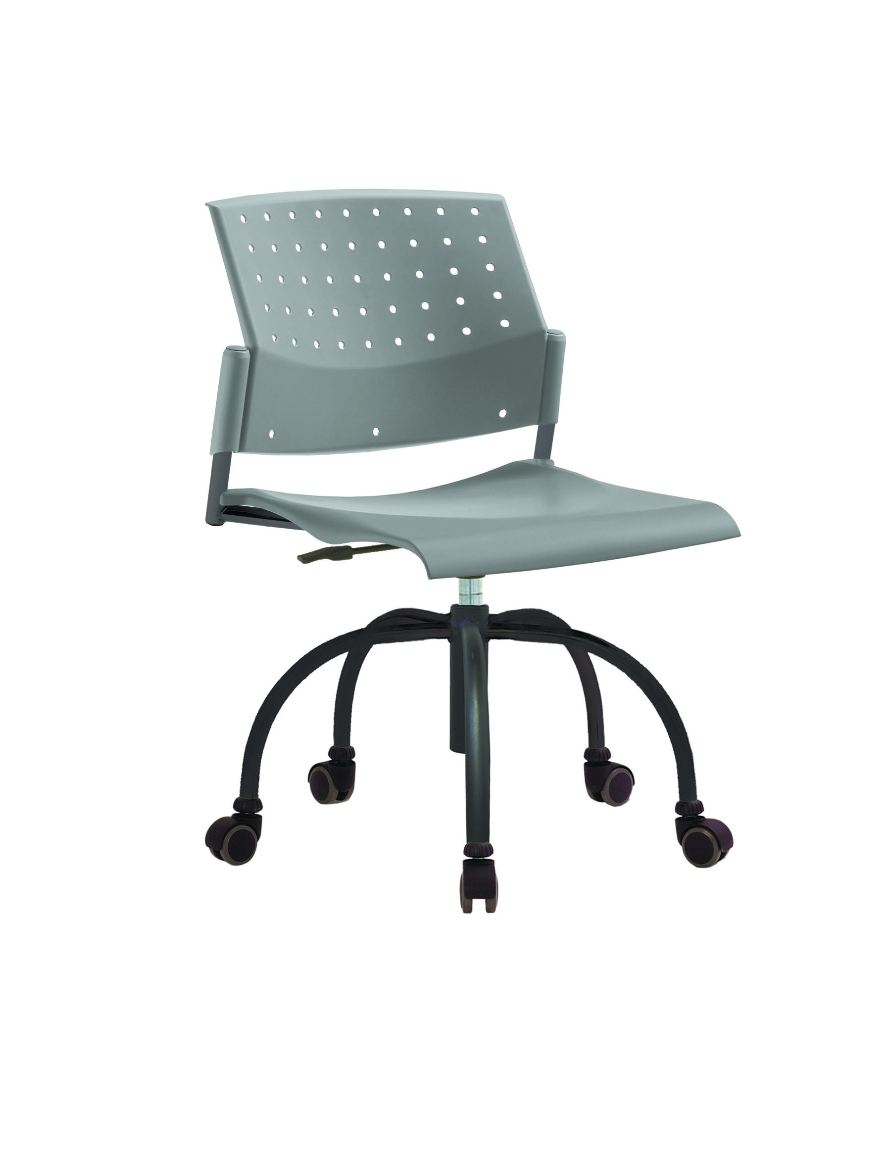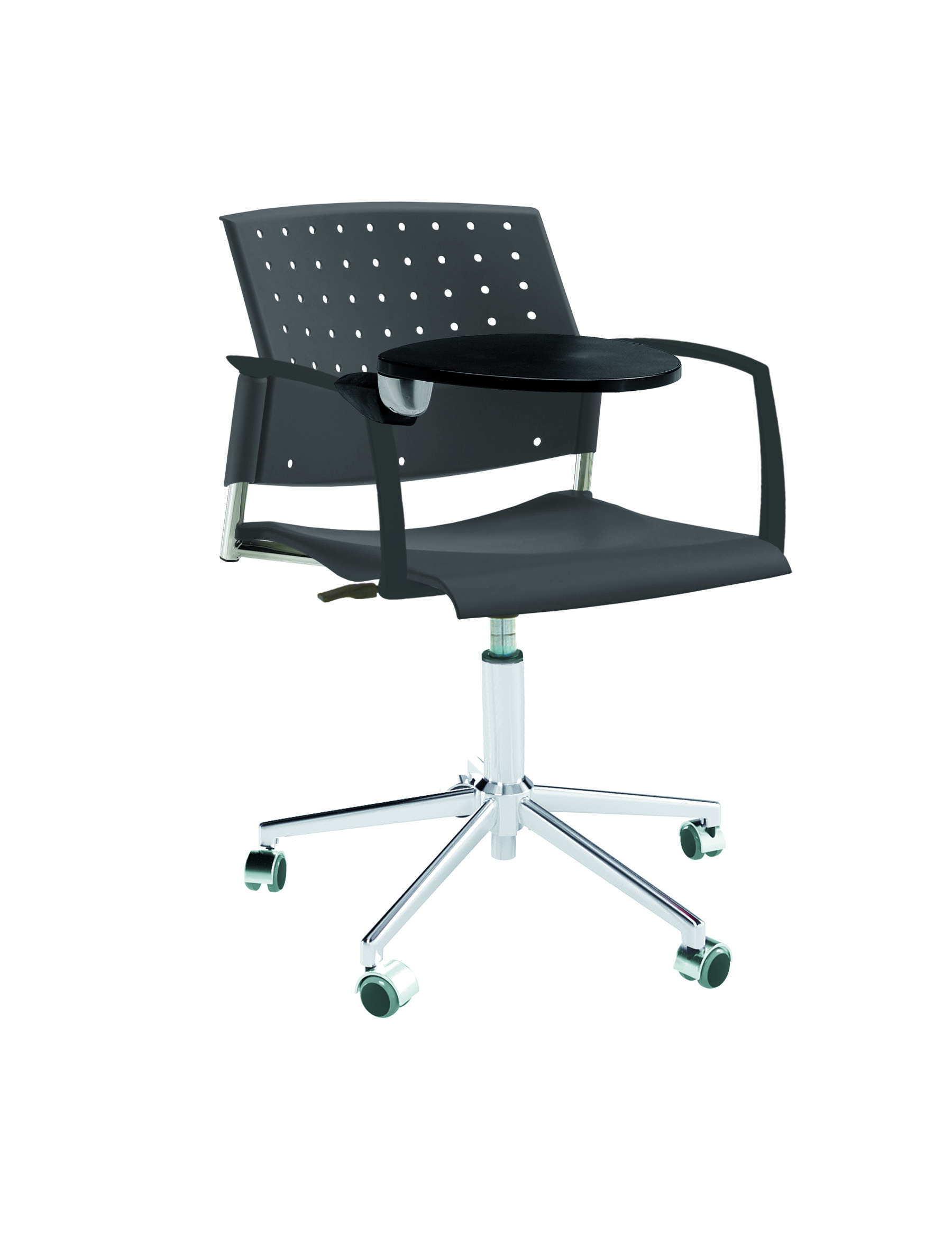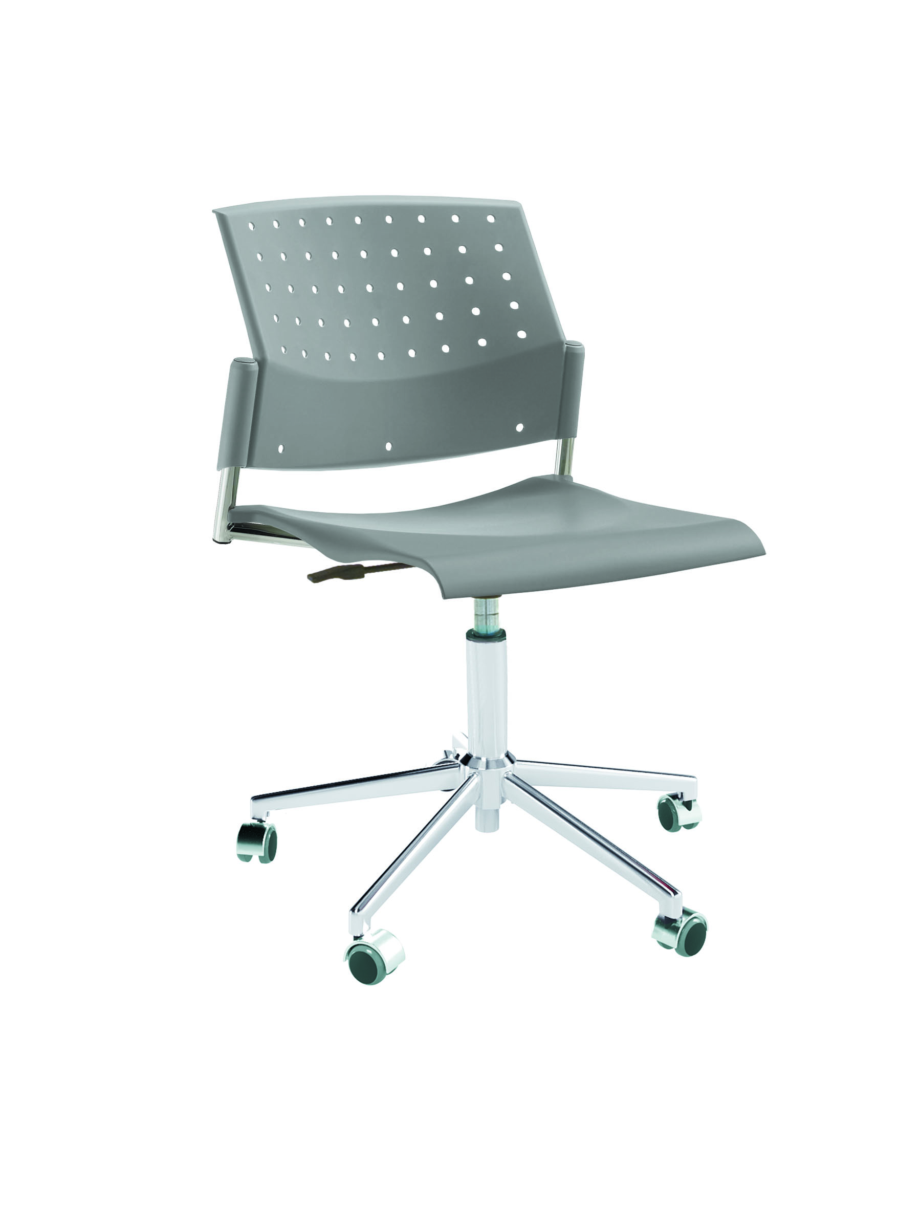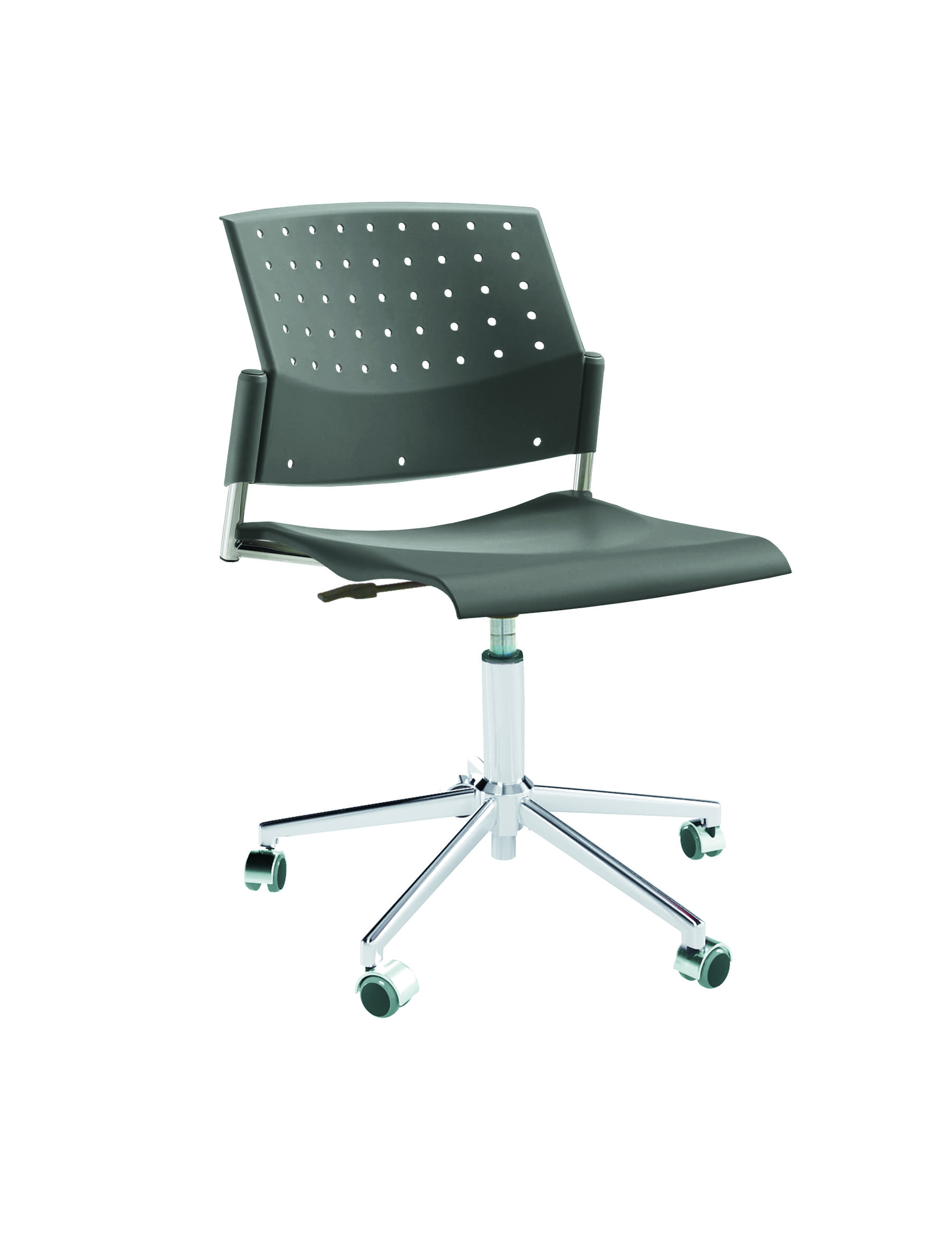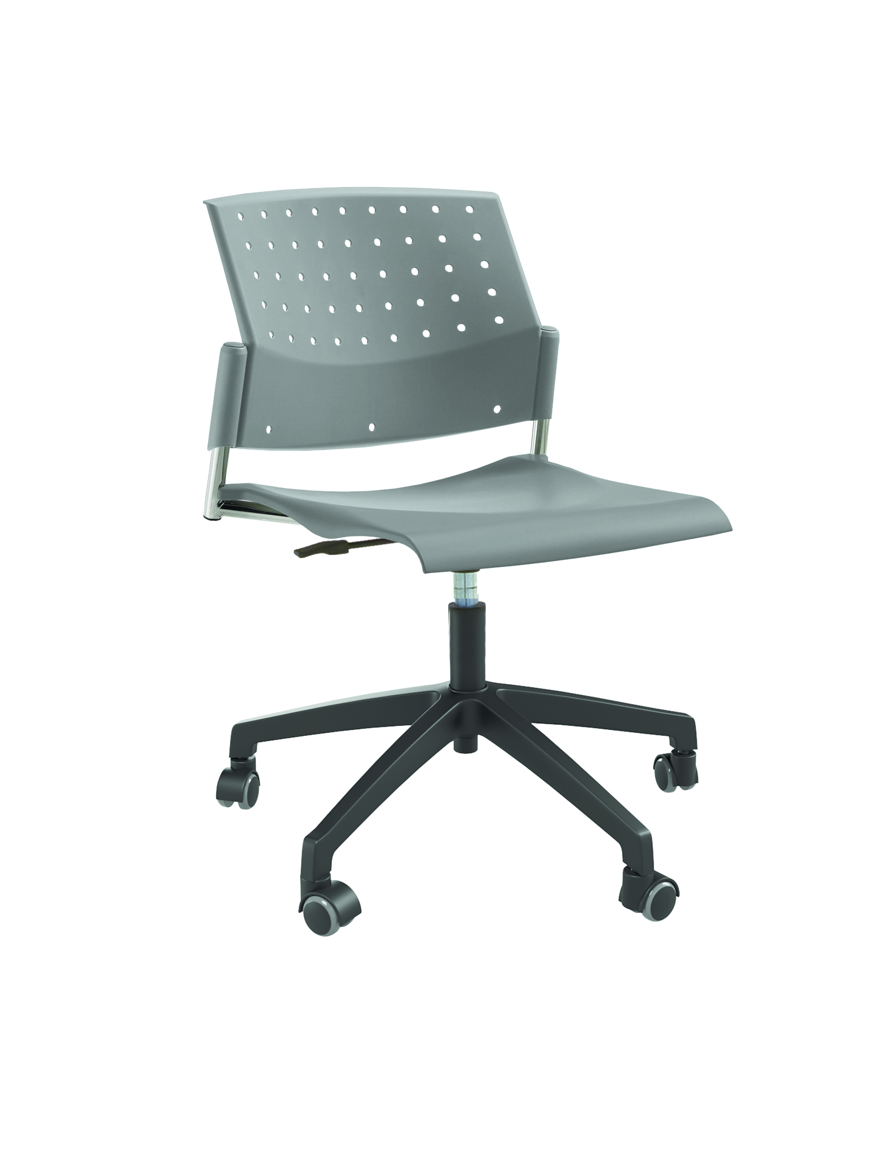 Спинка анатомической формы с поясничным прогибом. Ширина спинки 430мм, высота спинки 315 мм. Пластик спинки имеет перфорацию, диаметр отверстия 9 мм. Сидение имеет анатомическую форму с закруглениями на передней и боковых частей, которые предотвращают нарушения кровообращения. Ширина сидения 430 мм, глубина 430 мм. Спинка и сидение полипропилен.