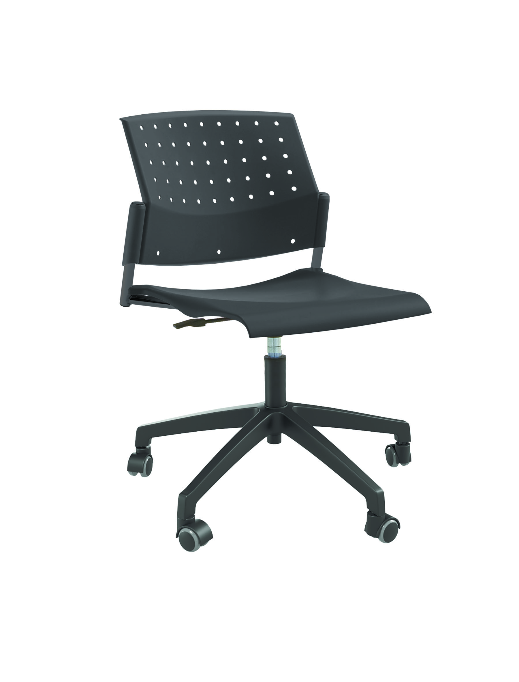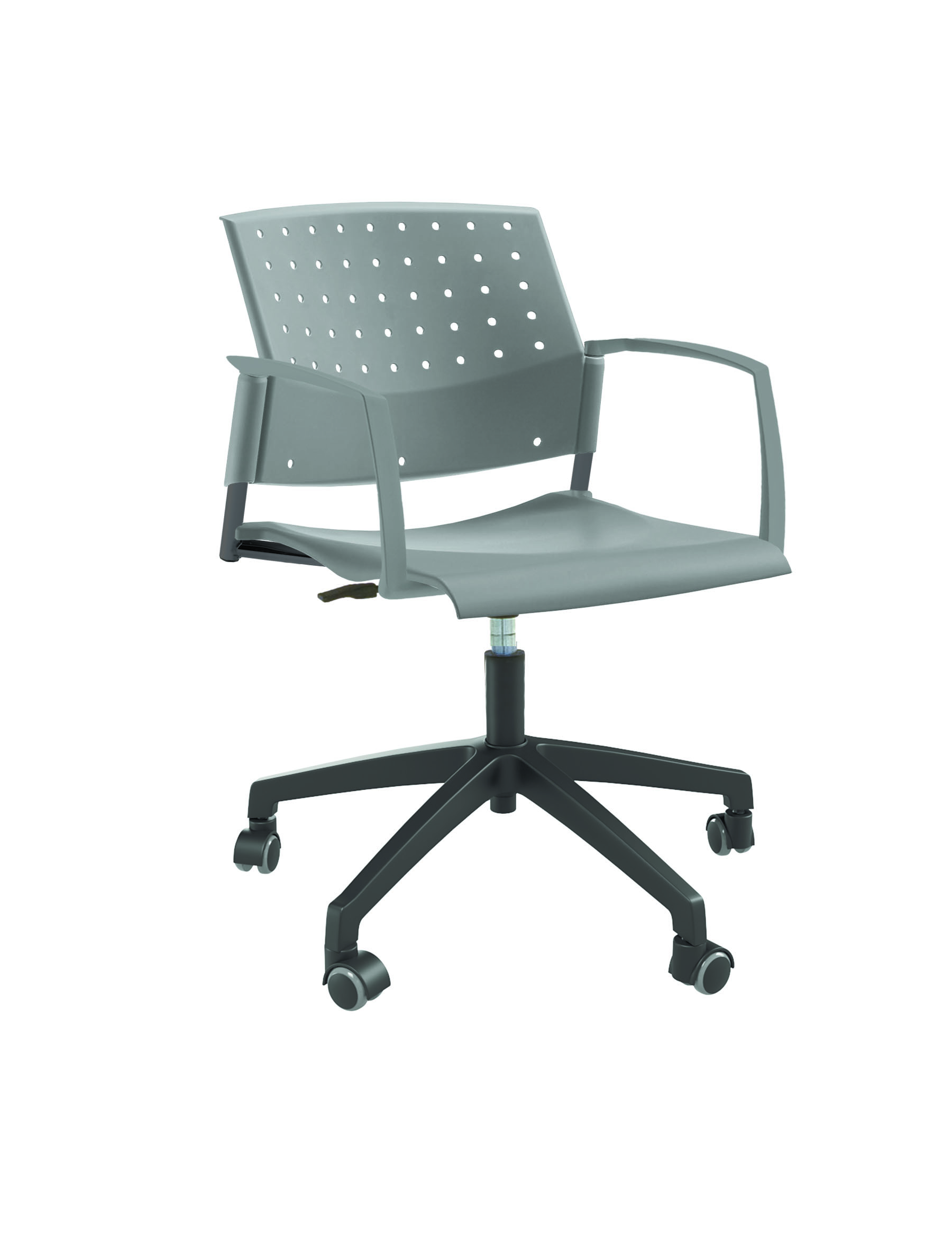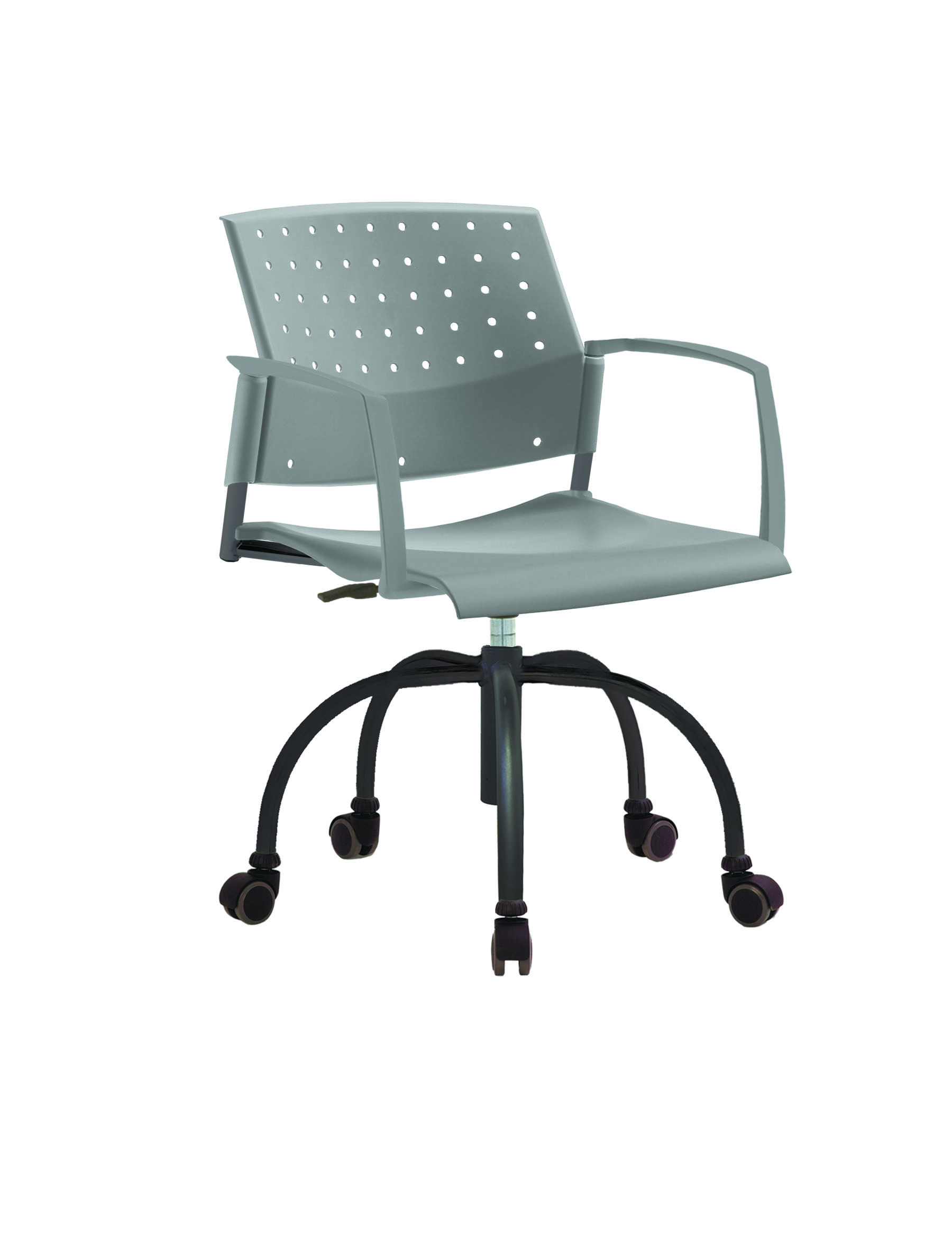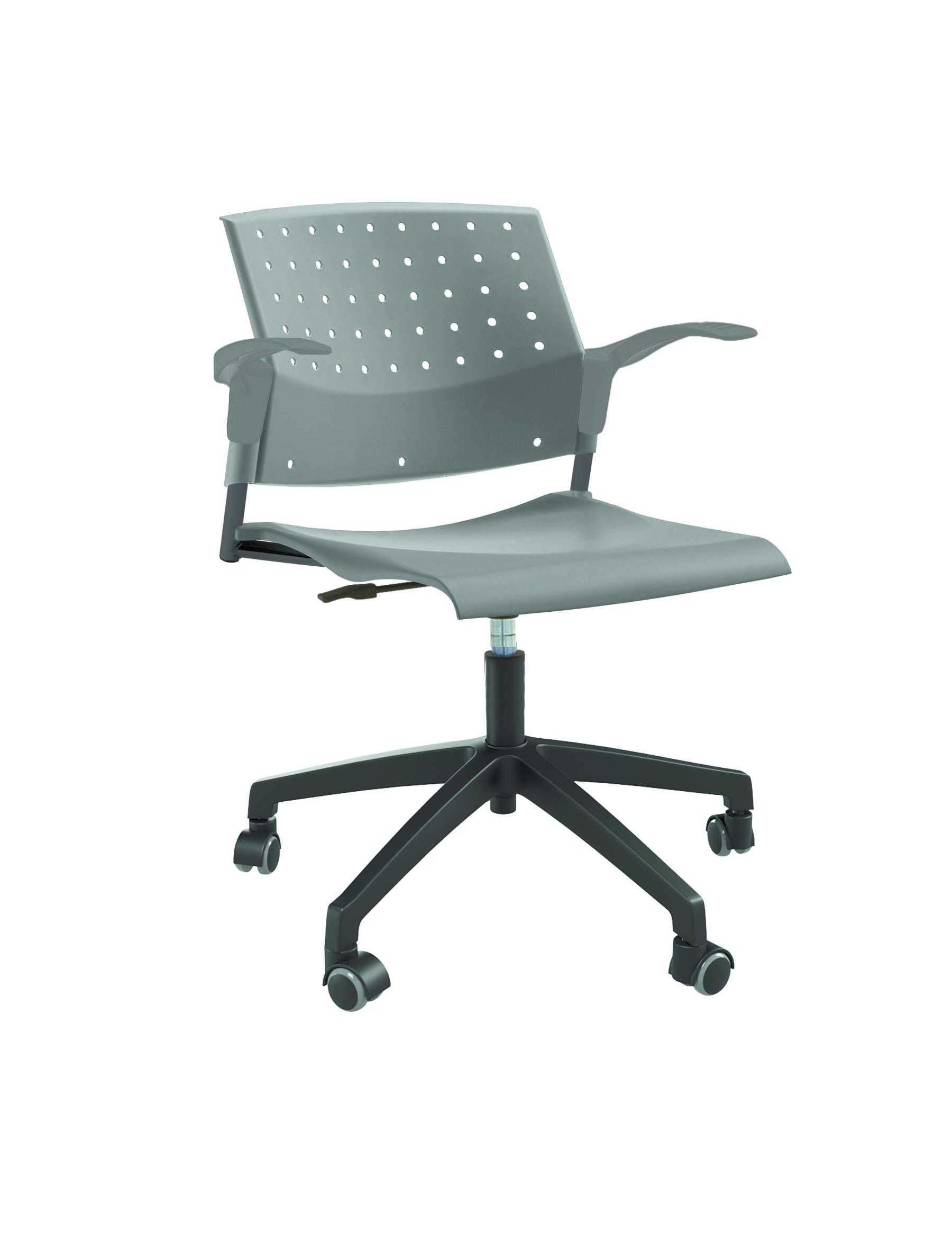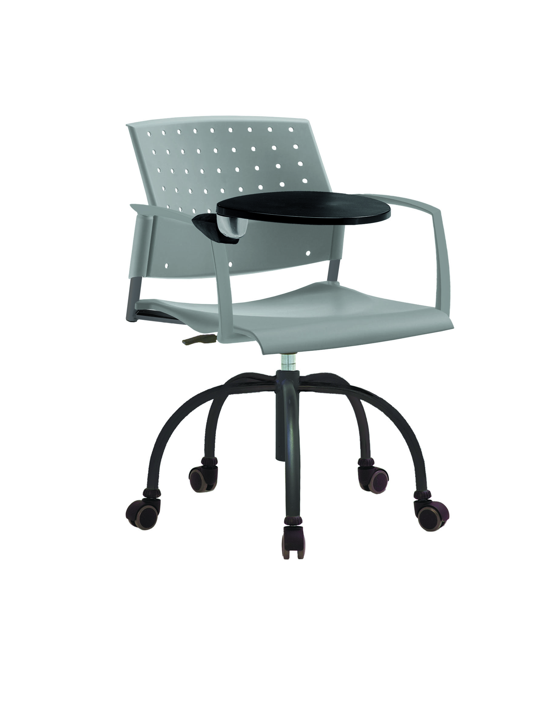 Спинка анатомической формы с поясничным прогибом. Ширина спинки 430мм, высота спинки 315 мм. Пластик спинки имеет перфорацию, диаметр отверстия 9 мм. Сидение имеет анатомическую форму с закруглениями на передней и боковых частей, которые предотвращают нарушения кровообращения. Ширина сидения 430 мм, глубина 430 мм. Спинка и сидение полипропилен.