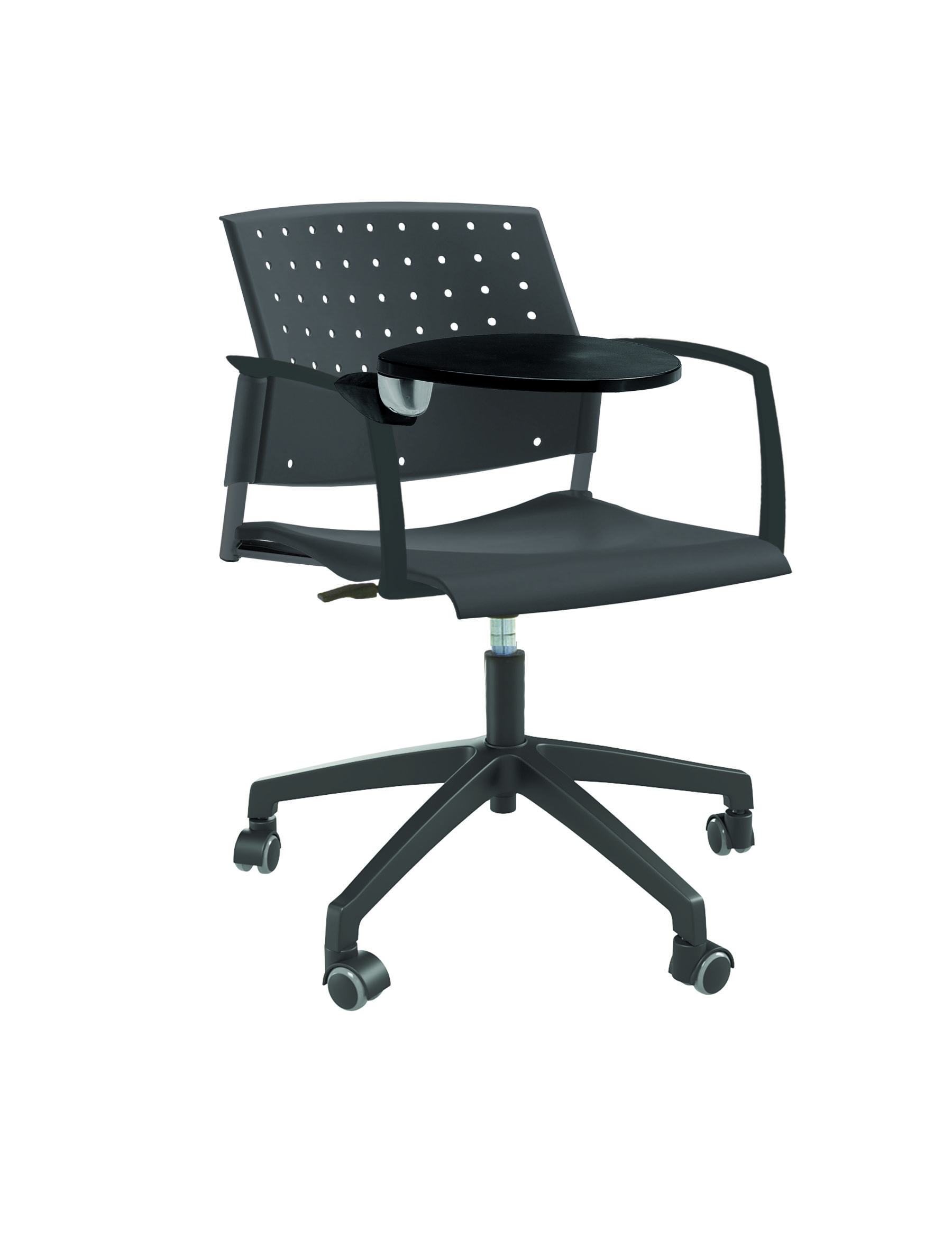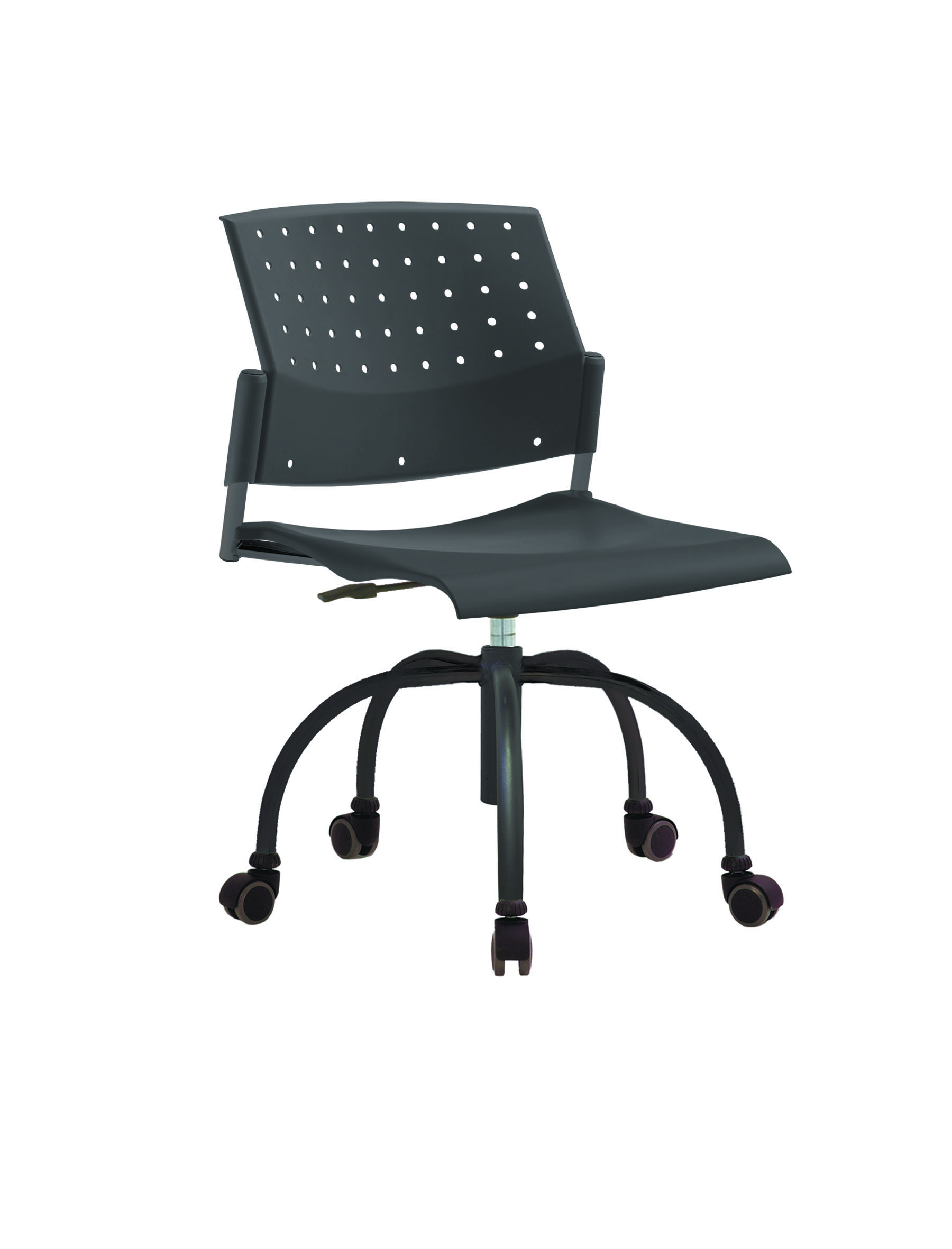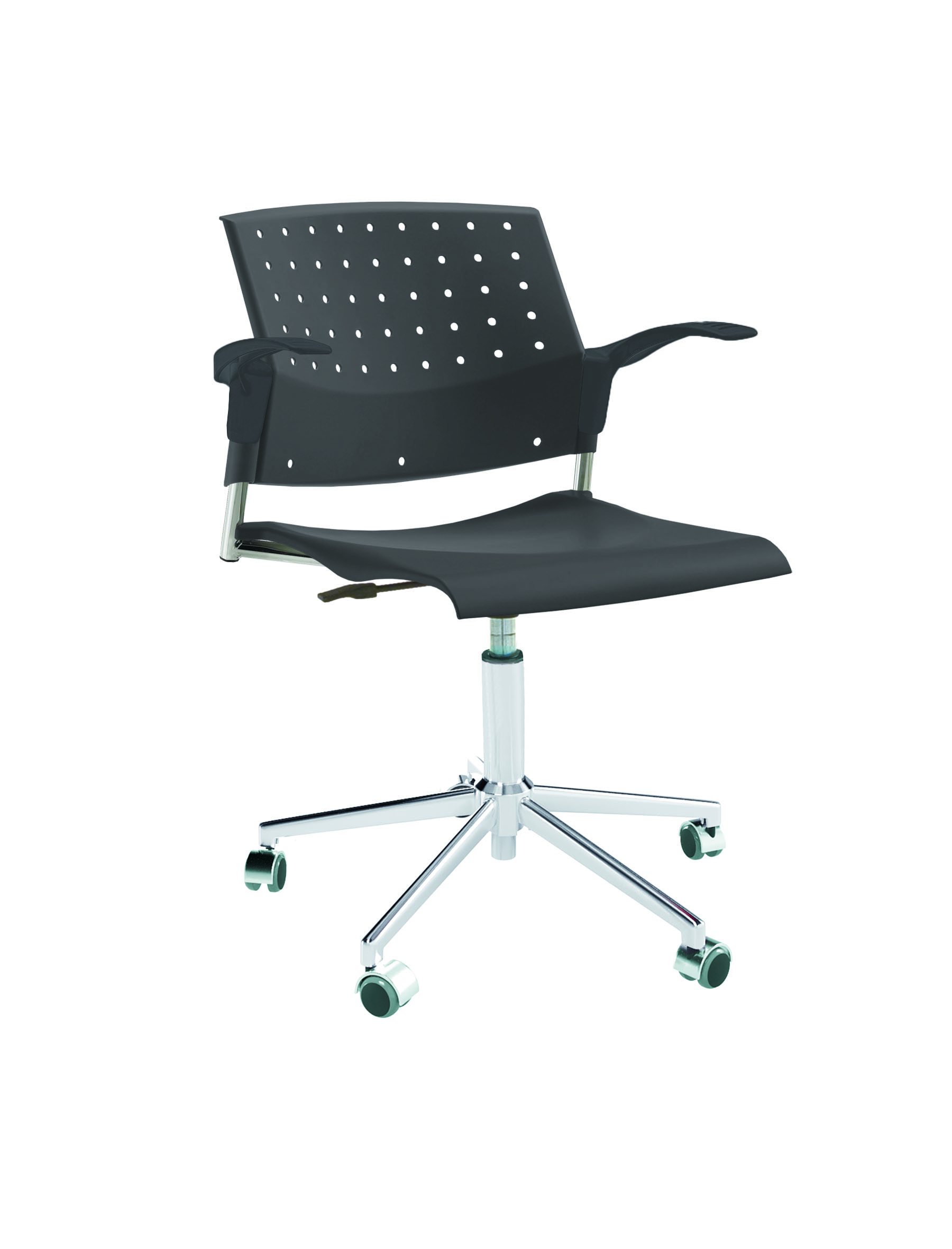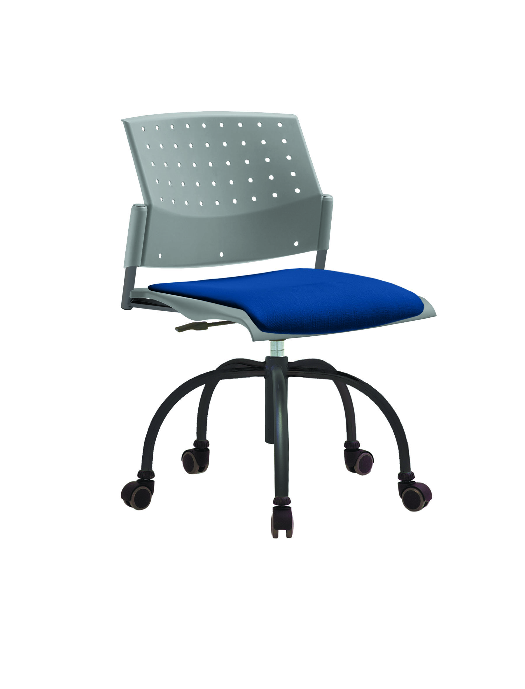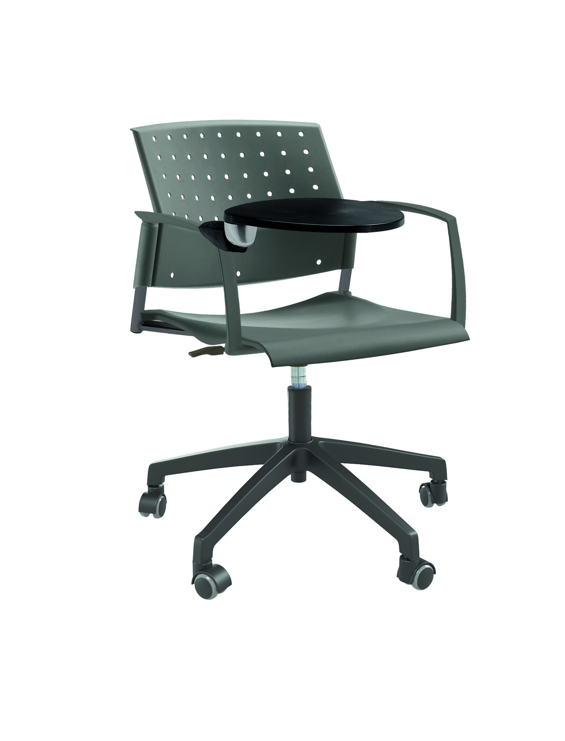 Спинка анатомической формы с поясничным прогибом. Ширина спинки 430мм, высота спинки 315 мм. Пластик спинки имеет перфорацию, диаметр отверстия 9 мм. Сидение имеет анатомическую форму с закруглениями на передней и боковых частей, которые предотвращают нарушения кровообращения. Ширина сидения 430 мм, глубина 430 мм. Спинка и сидение полипропилен.
