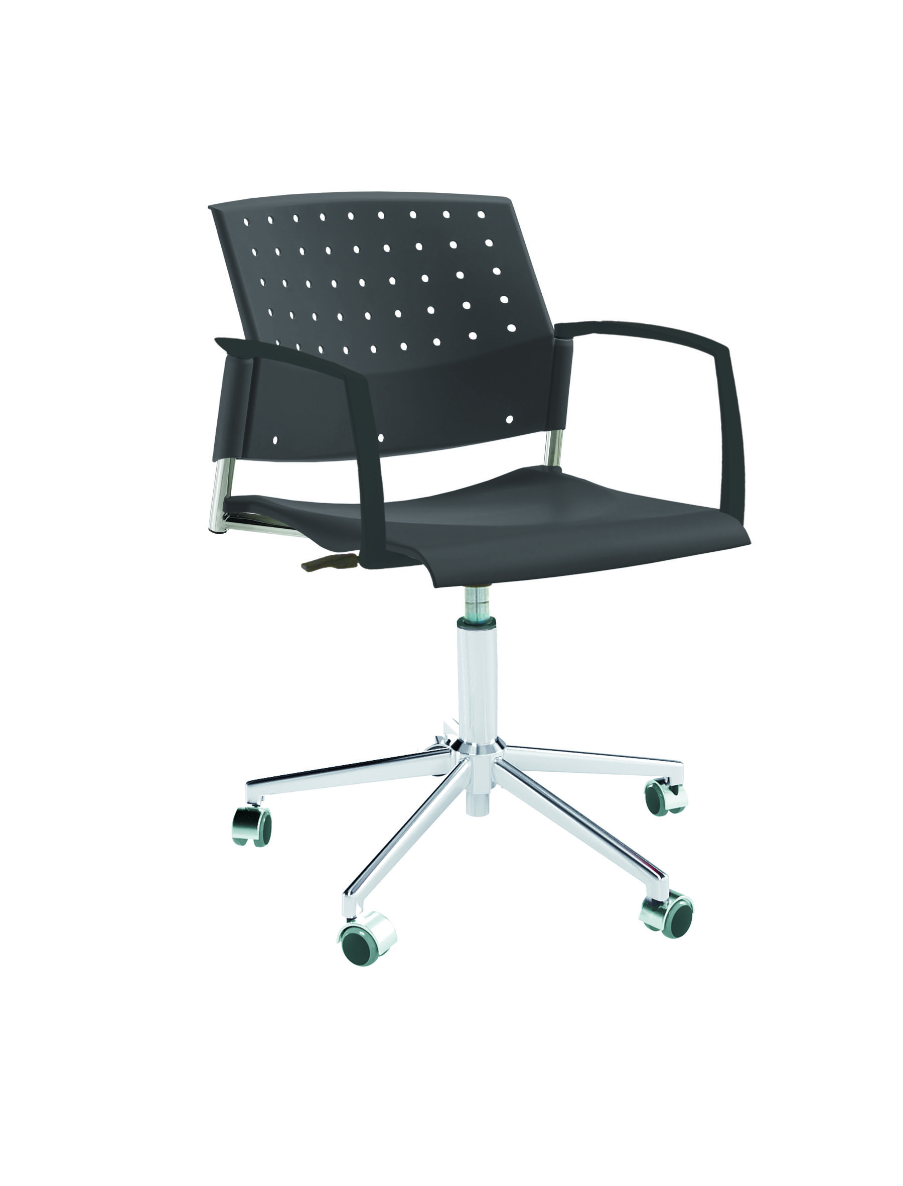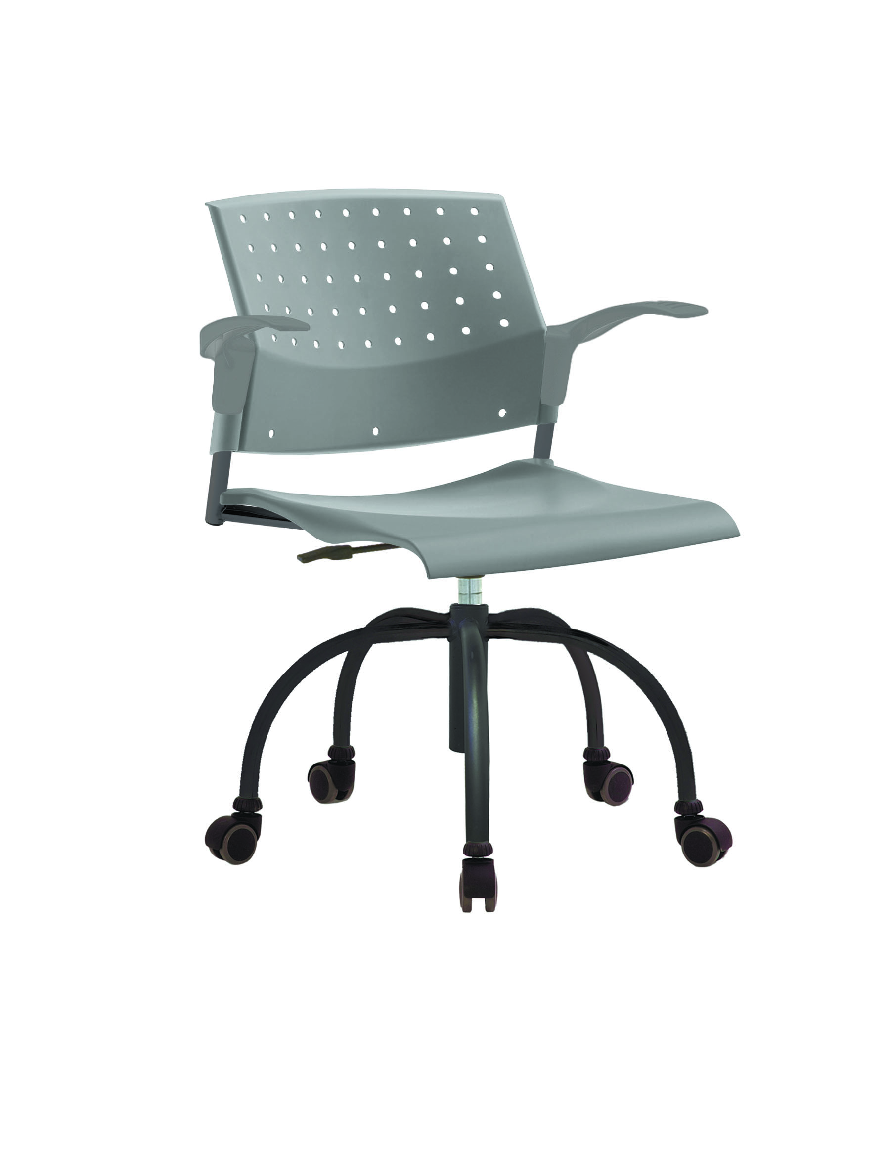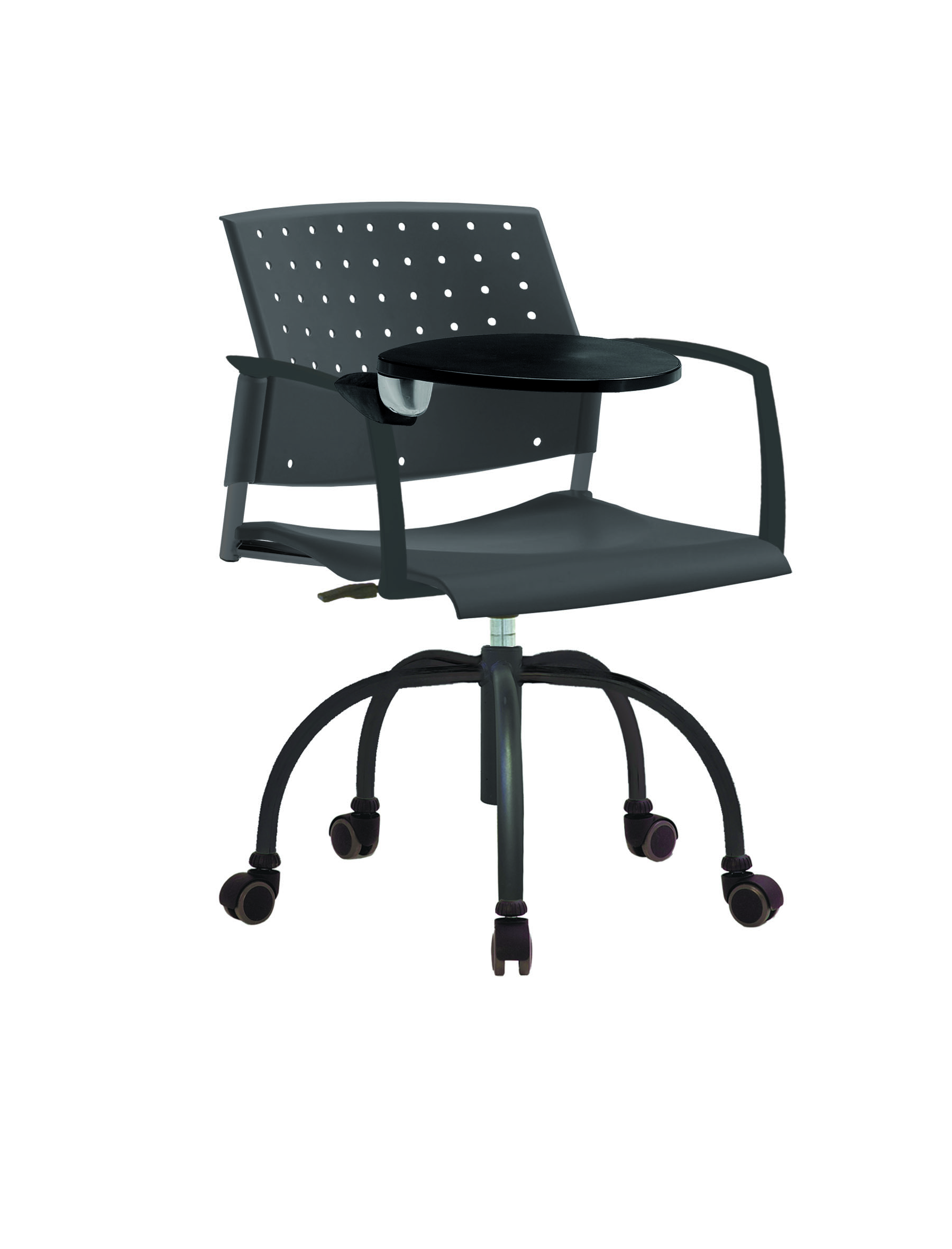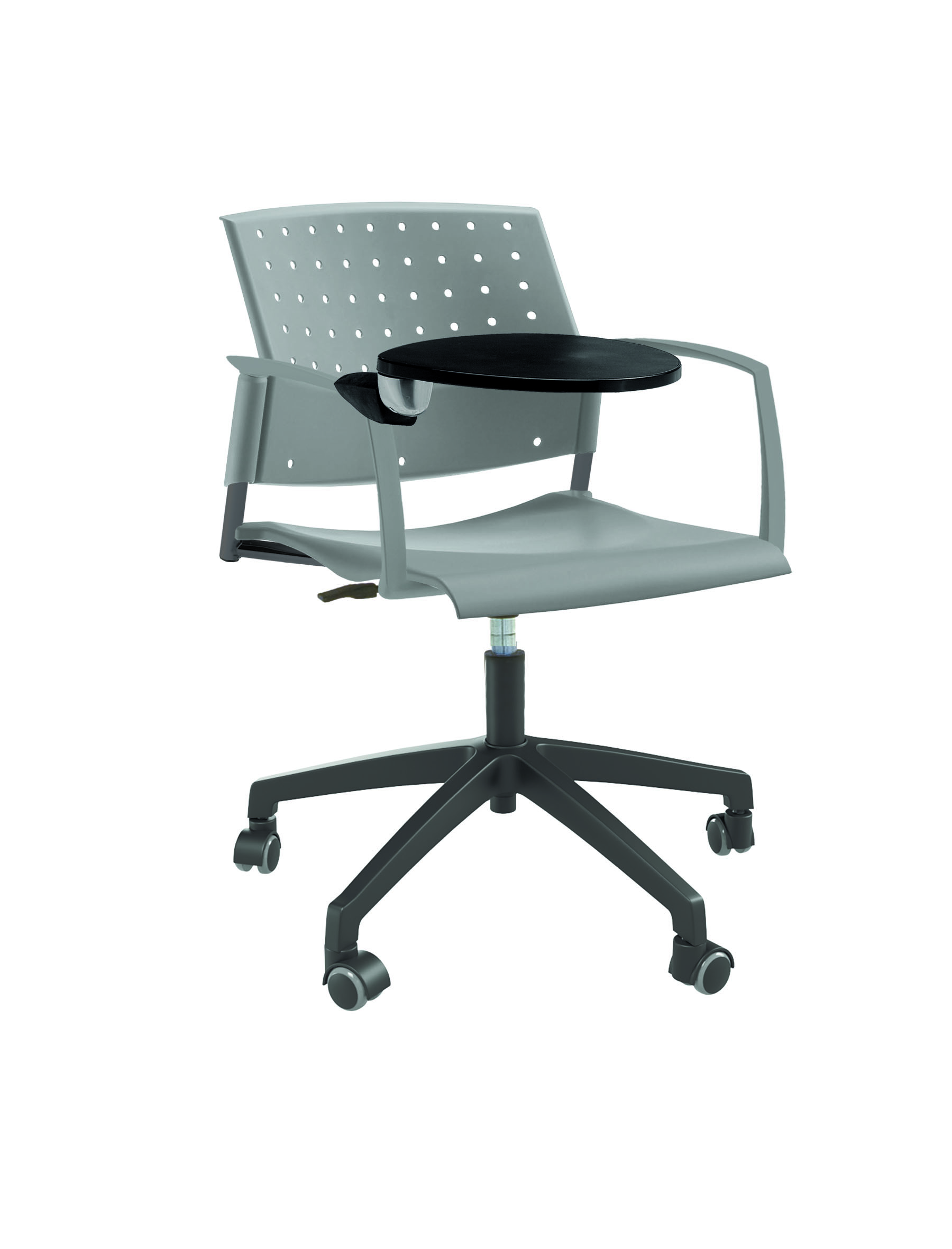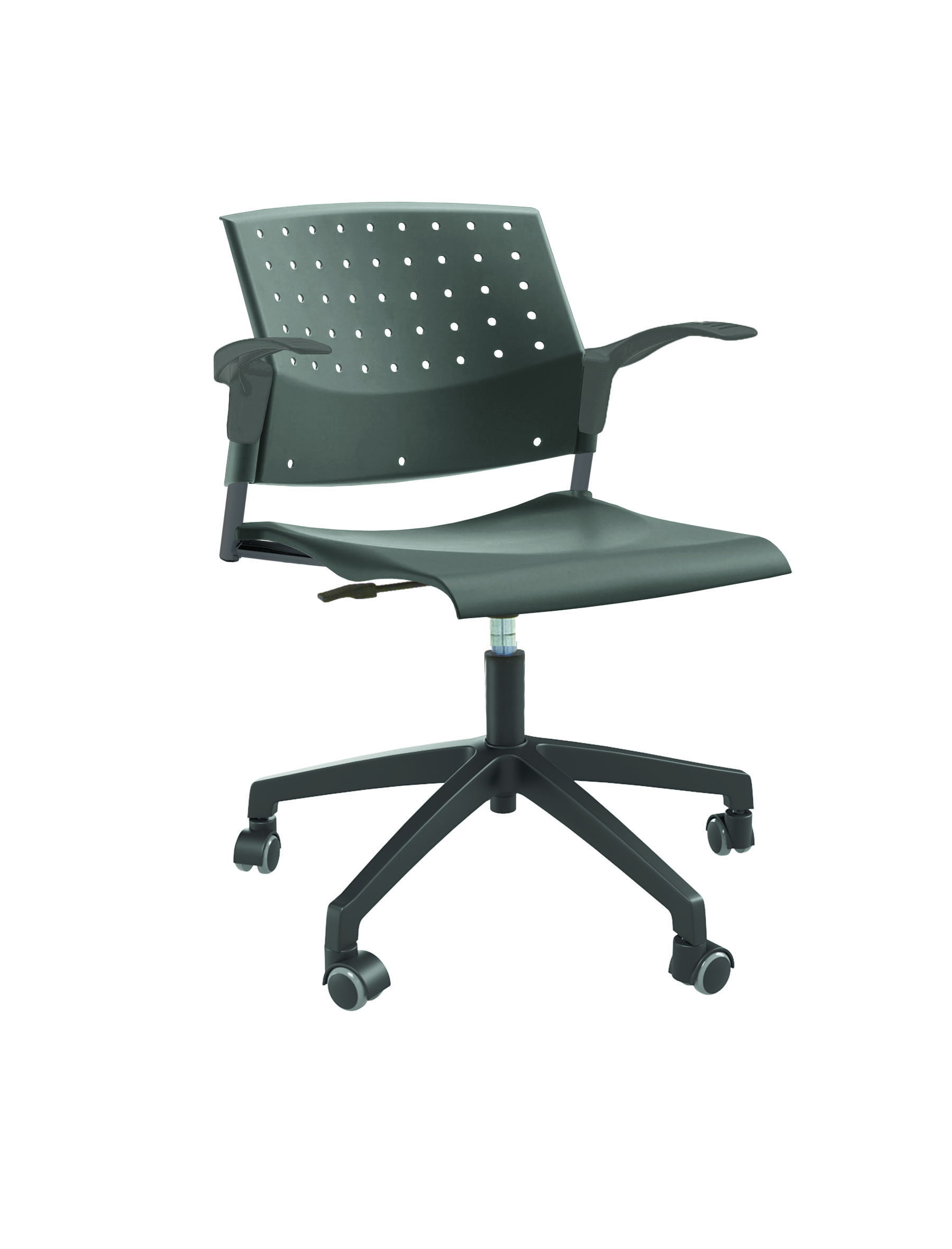 Спинка анатомической формы с поясничным прогибом. Ширина спинки 430мм, высота спинки 315 мм. Пластик спинки имеет перфорацию, диаметр отверстия 9 мм. Сидение имеет анатомическую форму с закруглениями на передней и боковых частей, которые предотвращают нарушения кровообращения. Ширина сидения 430 мм, глубина 430 мм. Спинка и сидение полипропилен.