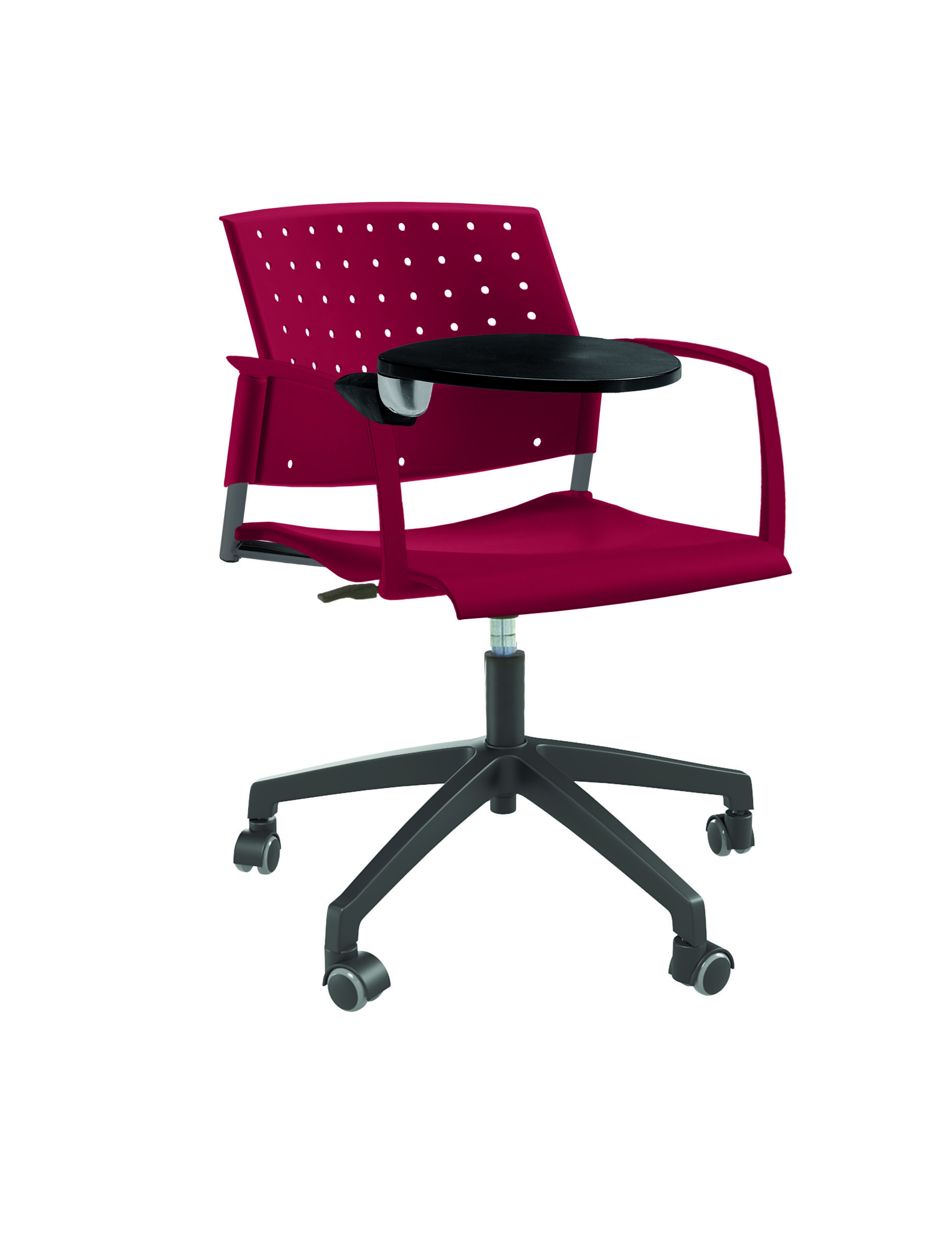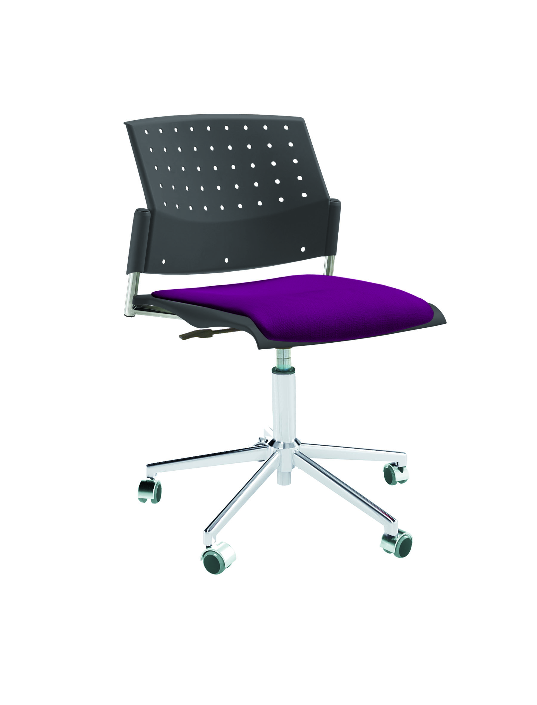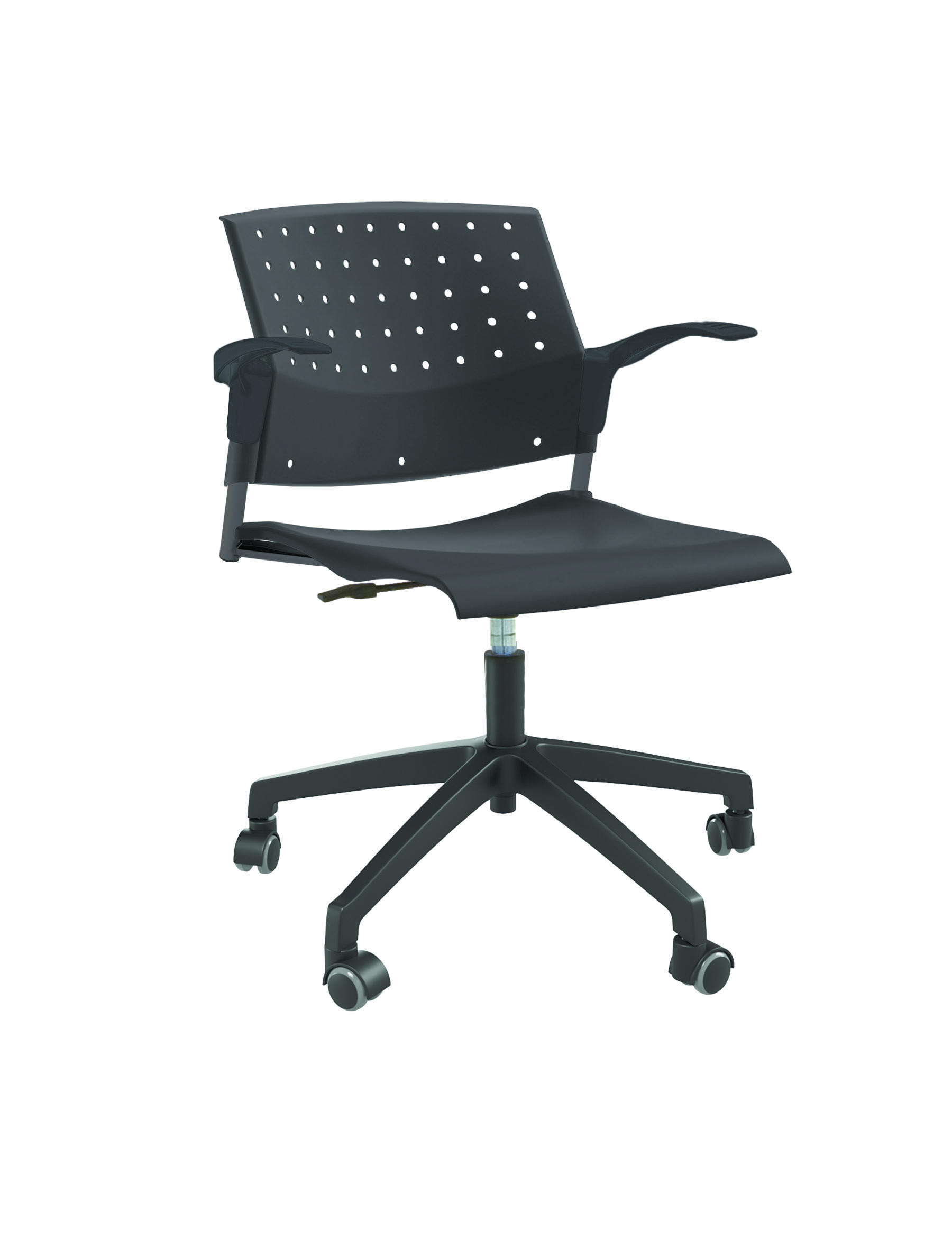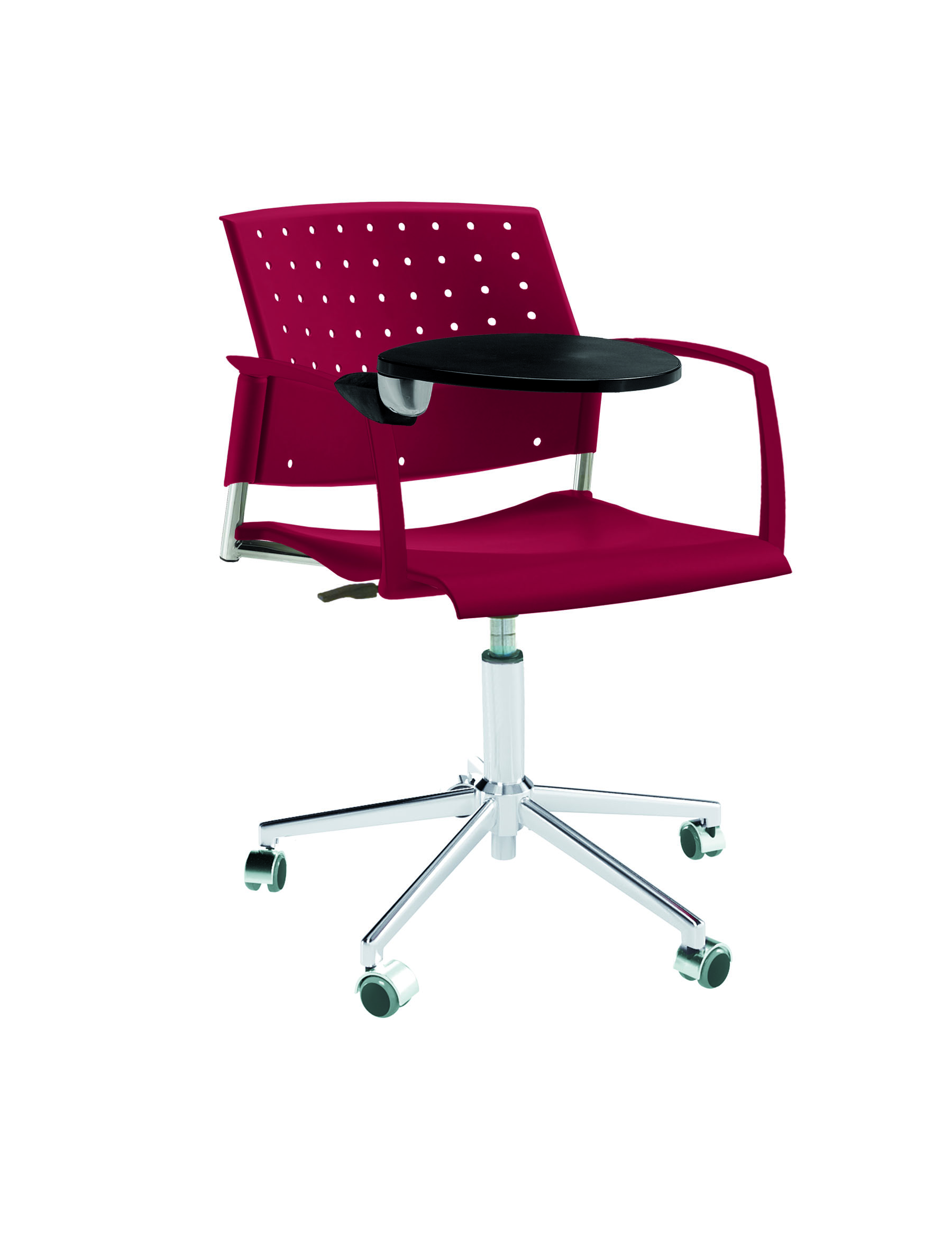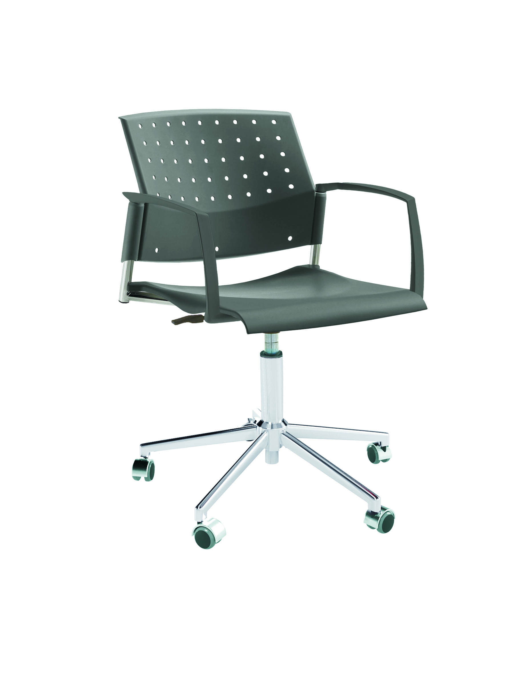 Спинка анатомической формы с поясничным прогибом. Ширина спинки 430мм, высота спинки 315 мм. Пластик спинки имеет перфорацию, диаметр отверстия 9 мм. Сидение имеет анатомическую форму с закруглениями на передней и боковых частей, которые предотвращают нарушения кровообращения. Ширина сидения 430 мм, глубина 430 мм. Спинка и сидение полипропилен.