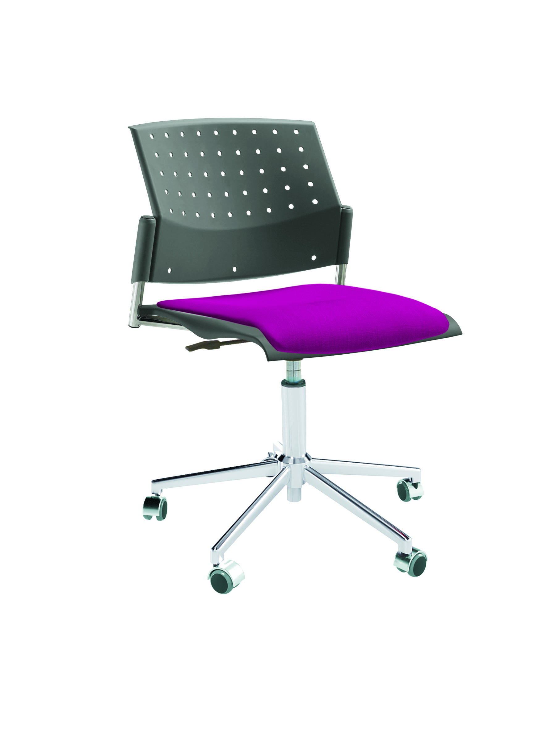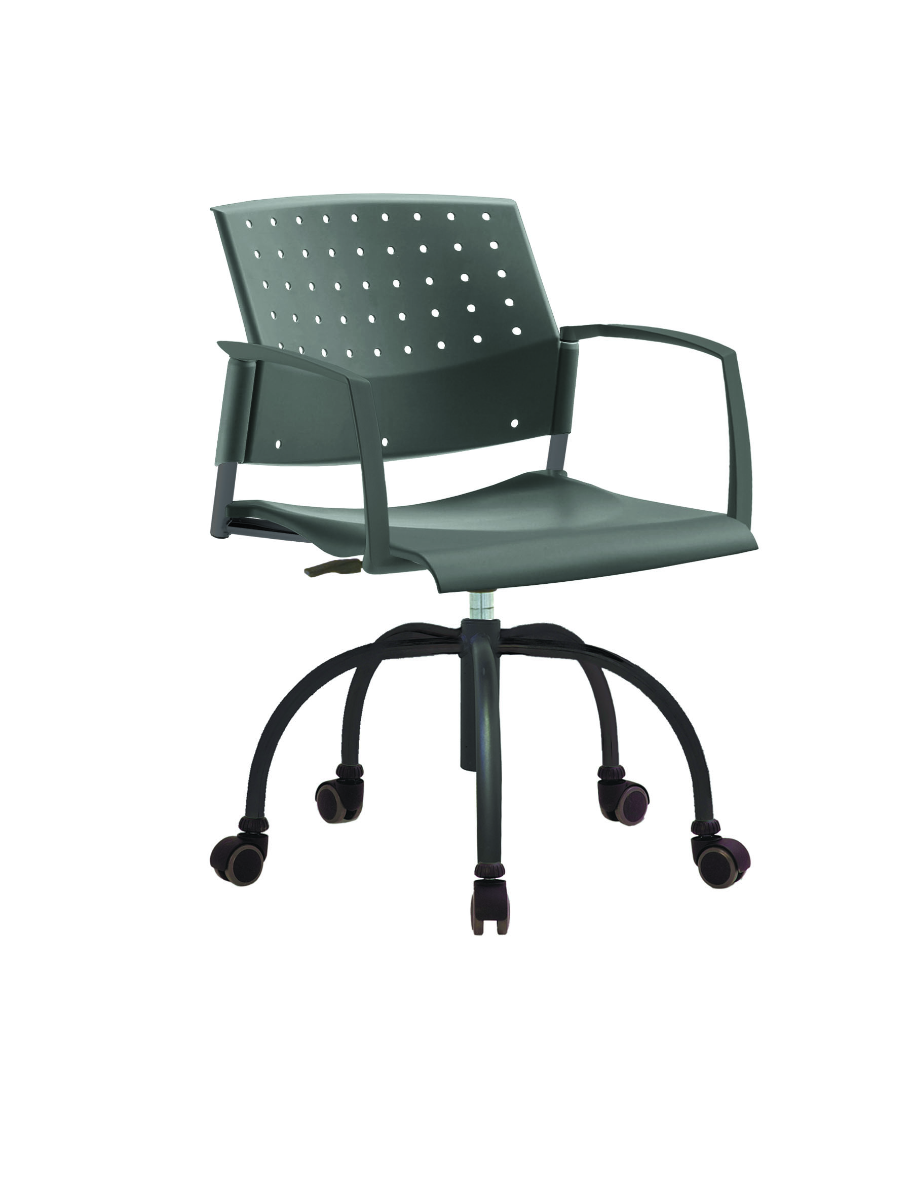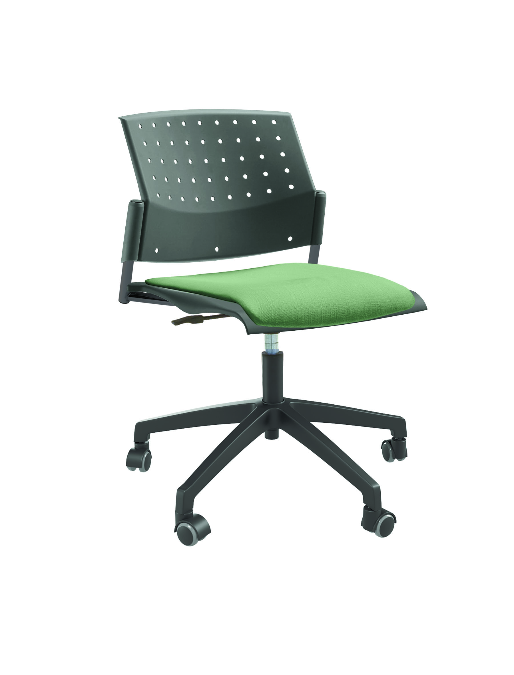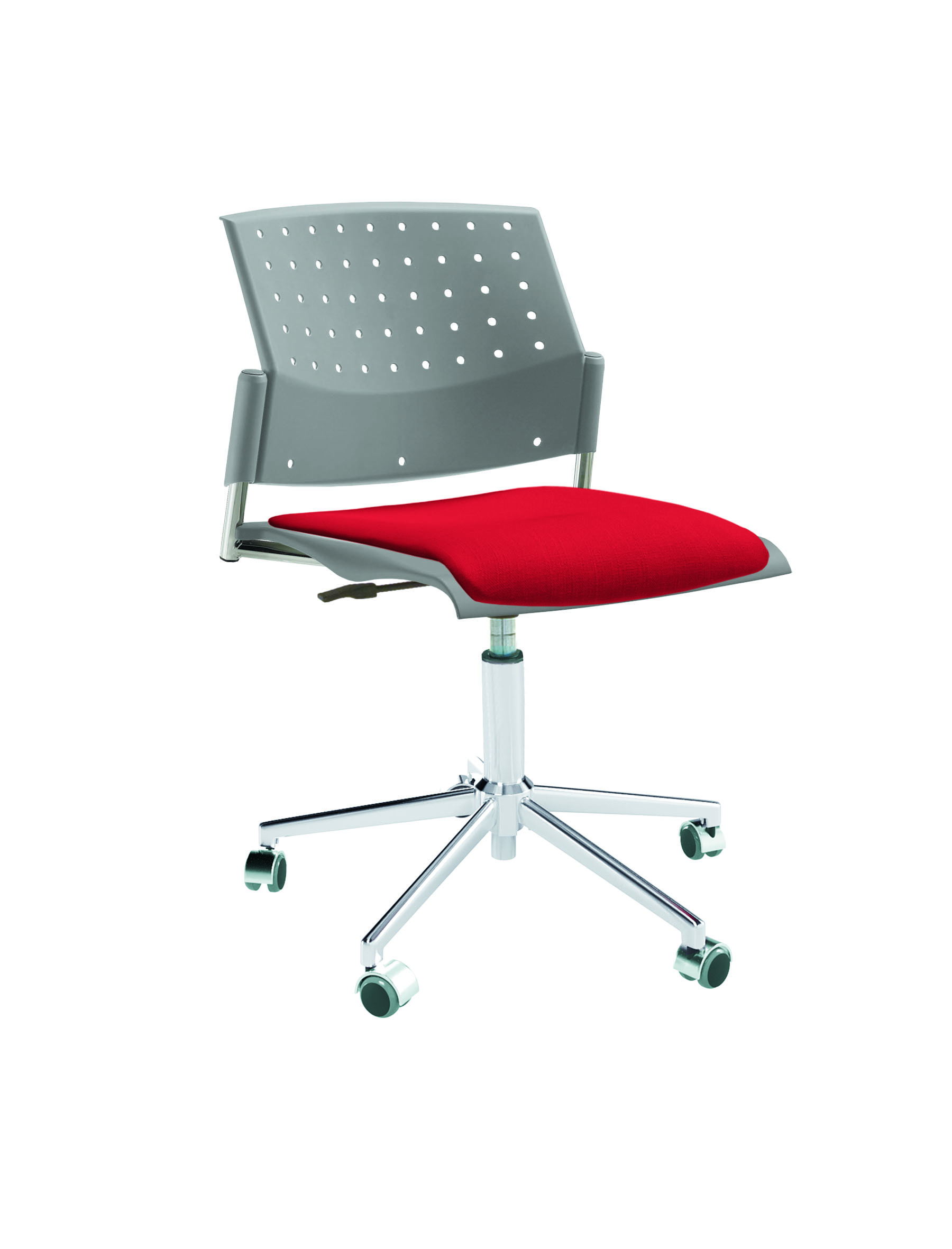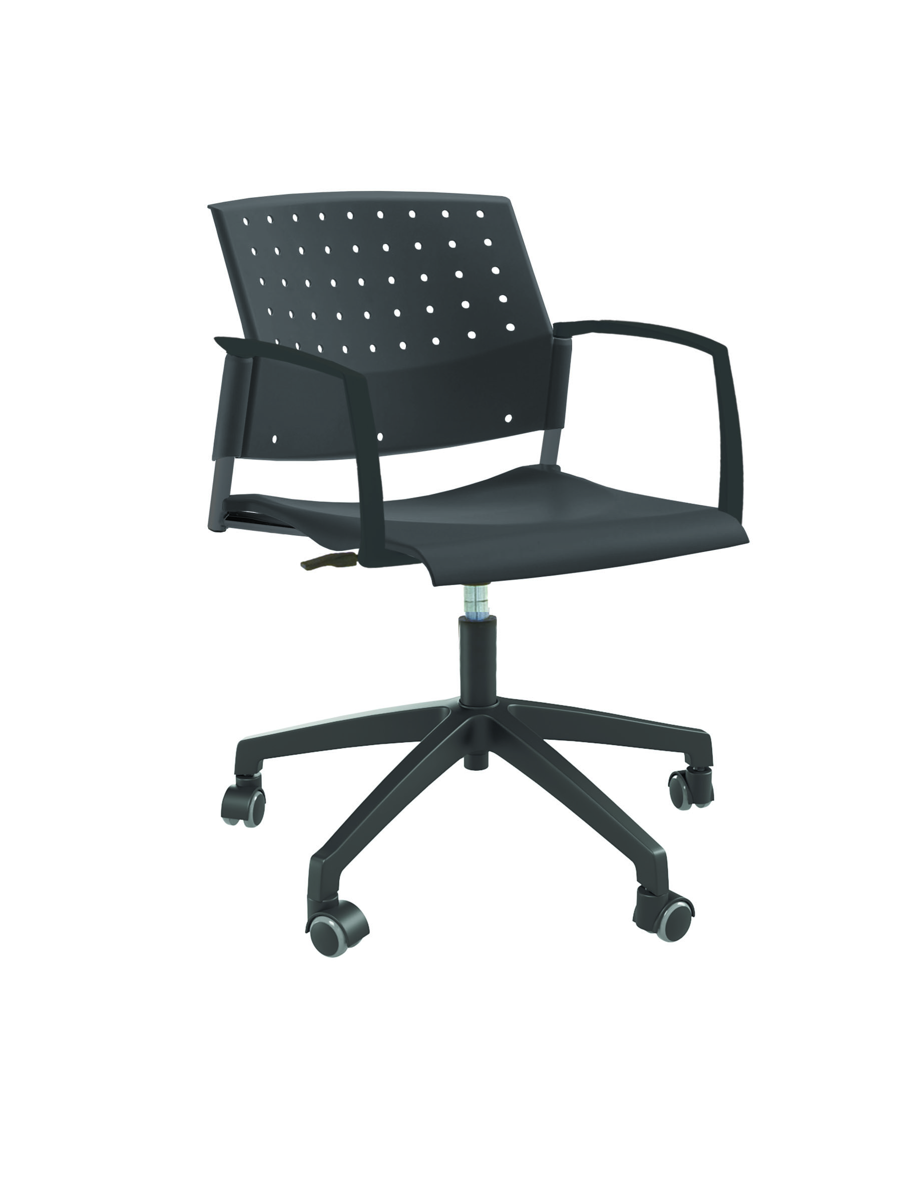 Спинка анатомической формы с поясничным прогибом. Ширина спинки 430мм, высота спинки 315 мм. Пластик спинки имеет перфорацию, диаметр отверстия 9 мм. Сидение имеет анатомическую форму с закруглениями на передней и боковых частей, которые предотвращают нарушения кровообращения. Ширина сидения 430 мм, глубина 430 мм. Спинка и сидение полипропилен.