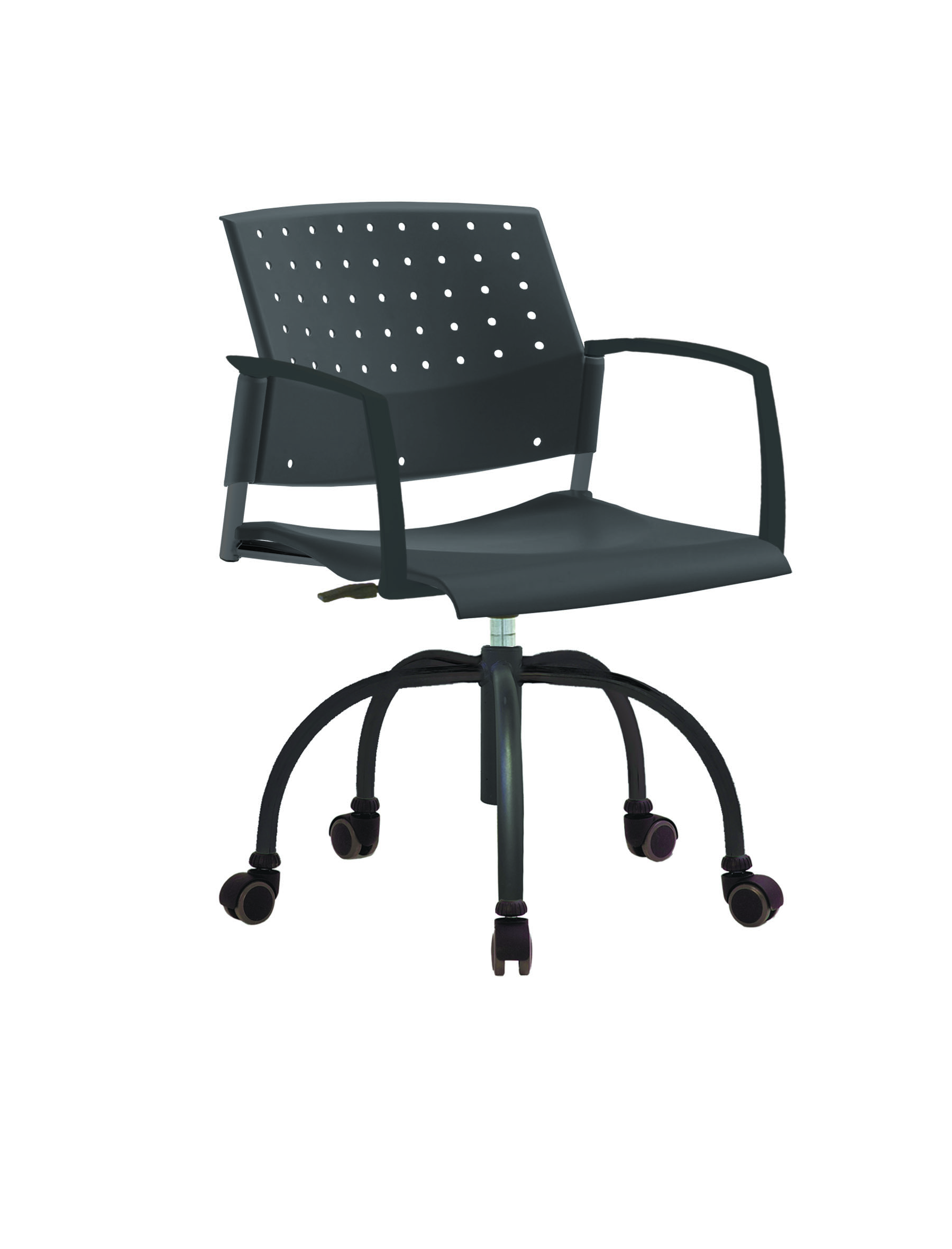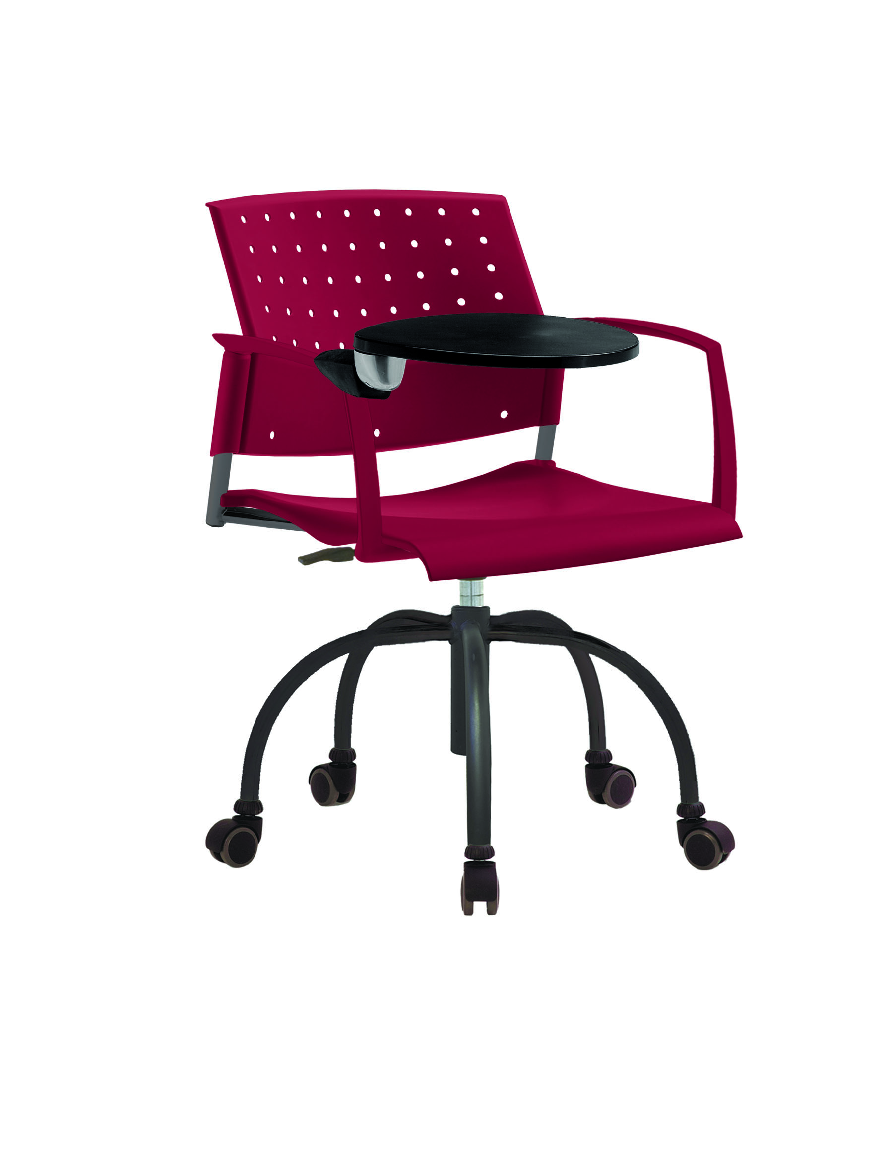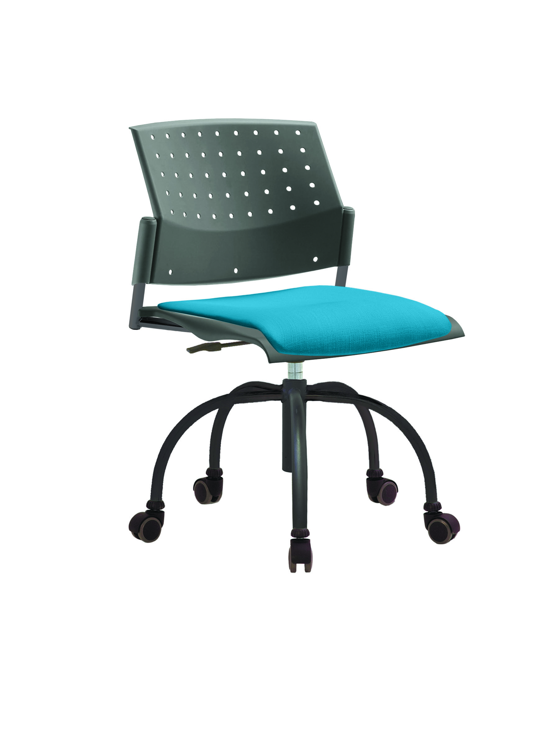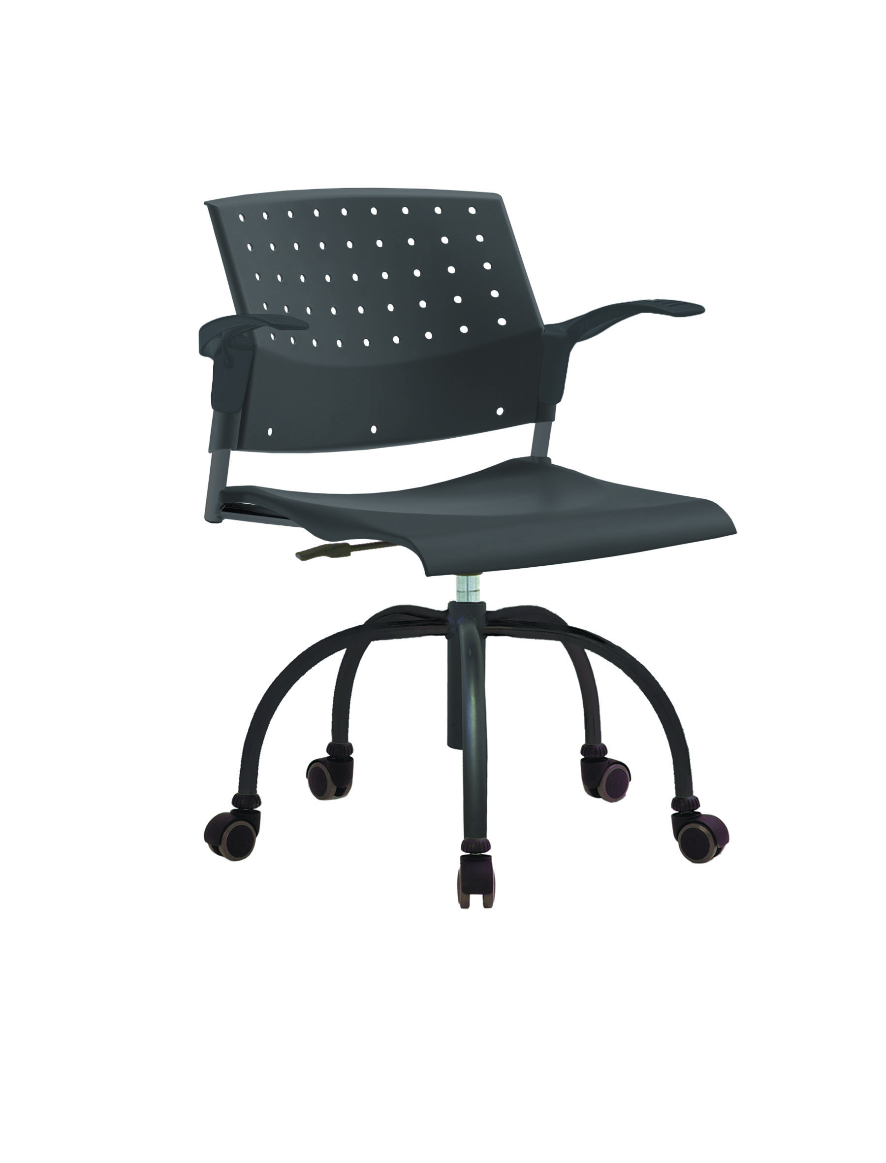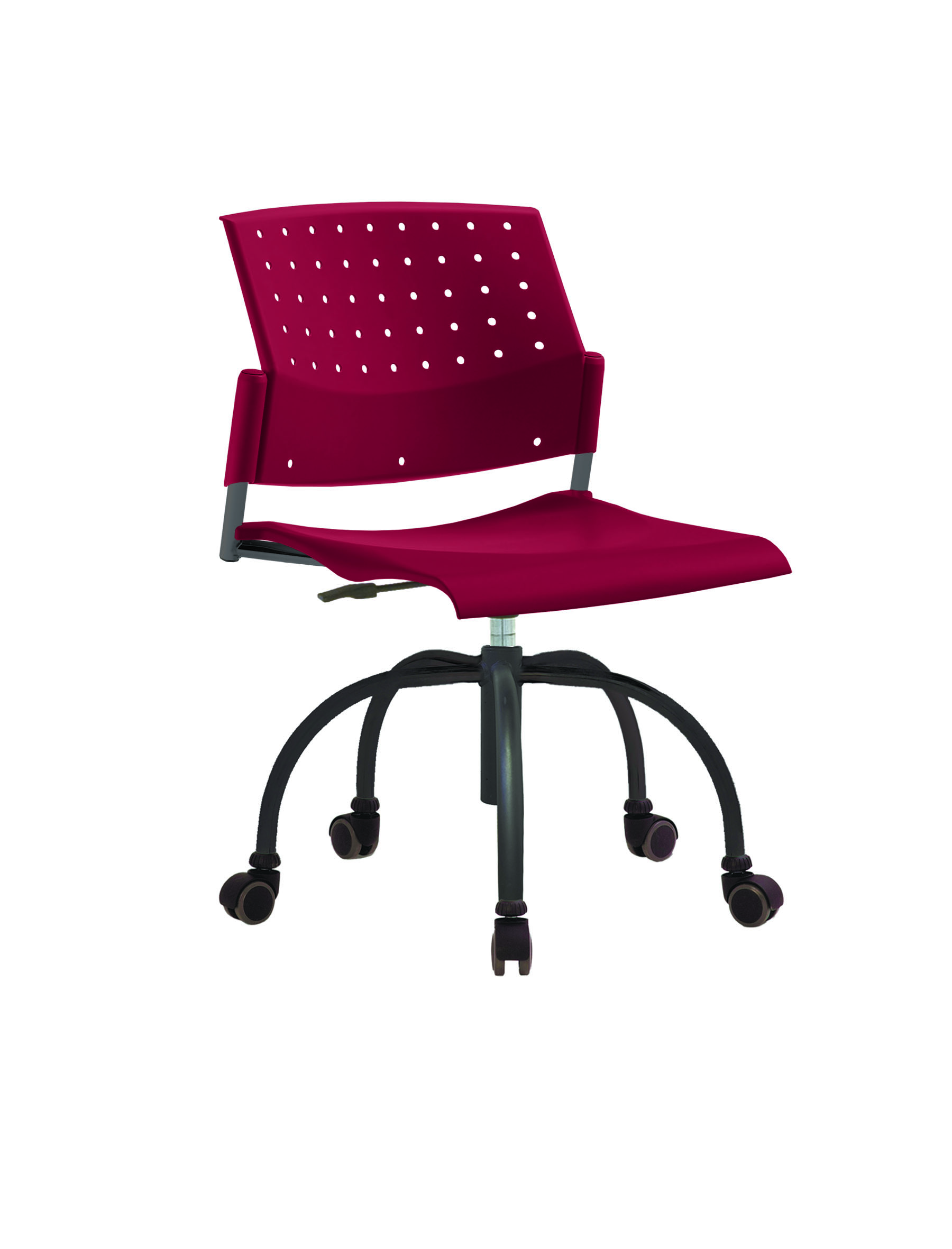 Спинка анатомической формы с поясничным прогибом. Ширина спинки 430мм, высота спинки 315 мм. Пластик спинки имеет перфорацию, диаметр отверстия 9 мм. Сидение имеет анатомическую форму с закруглениями на передней и боковых частей, которые предотвращают нарушения кровообращения. Ширина сидения 430 мм, глубина 430 мм. Спинка и сидение полипропилен.