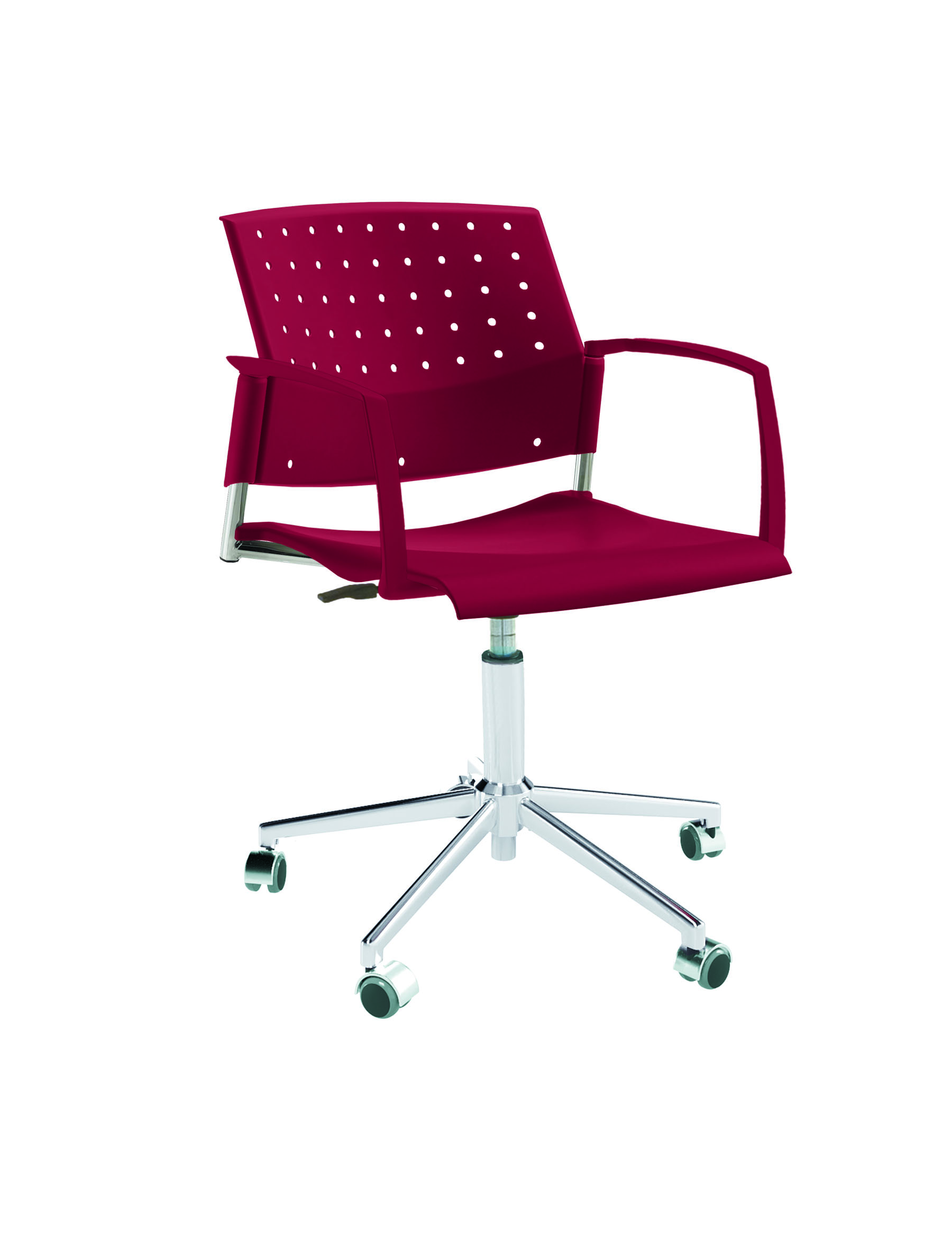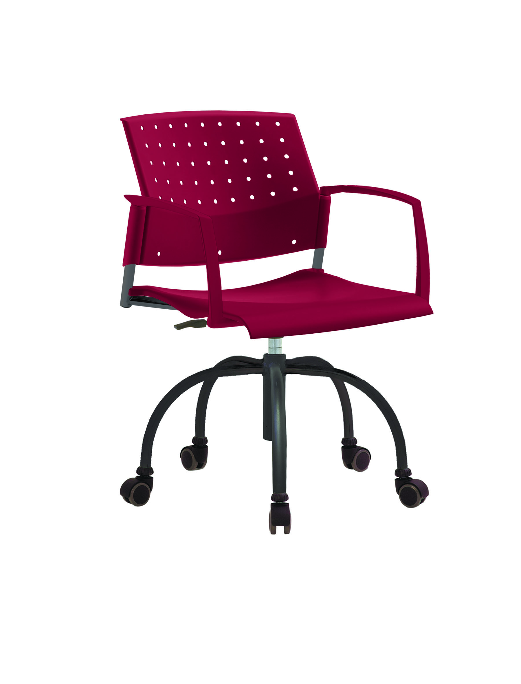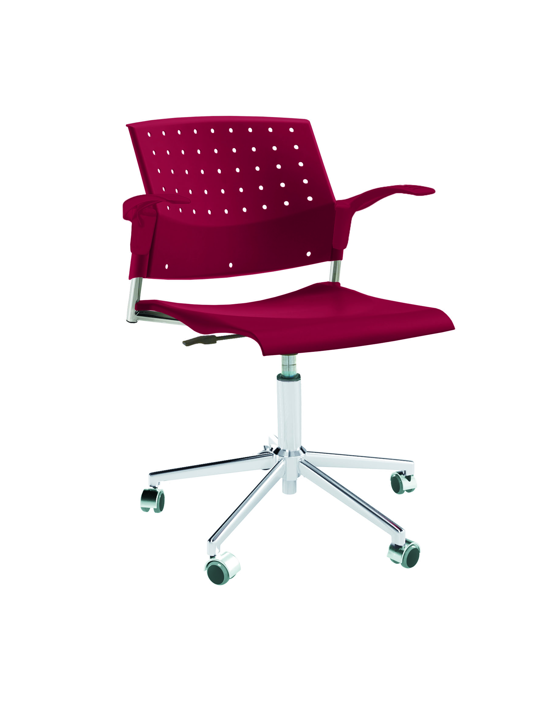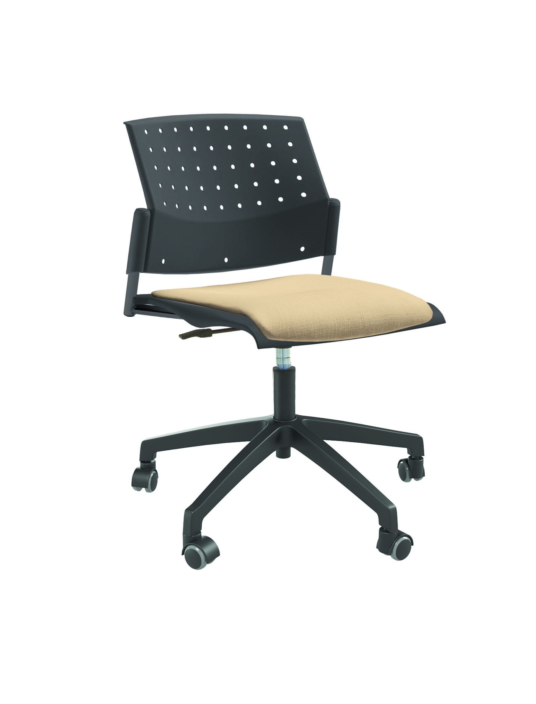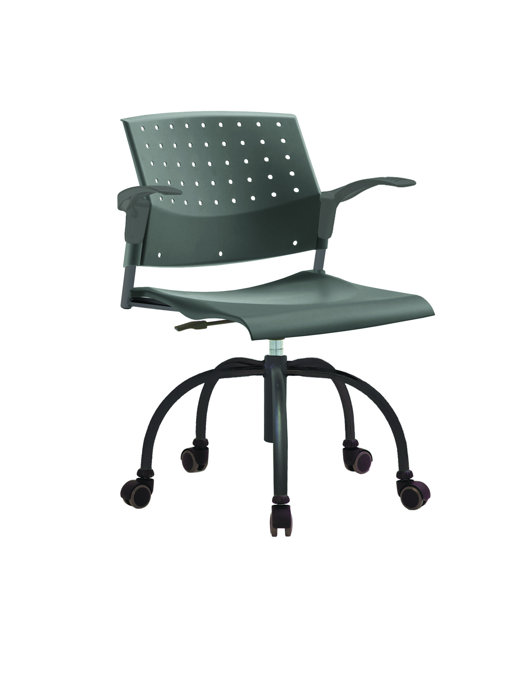 Спинка анатомической формы с поясничным прогибом. Ширина спинки 430мм, высота спинки 315 мм. Пластик спинки имеет перфорацию, диаметр отверстия 9 мм. Сидение имеет анатомическую форму с закруглениями на передней и боковых частей, которые предотвращают нарушения кровообращения. Ширина сидения 430 мм, глубина 430 мм. Спинка и сидение полипропилен.