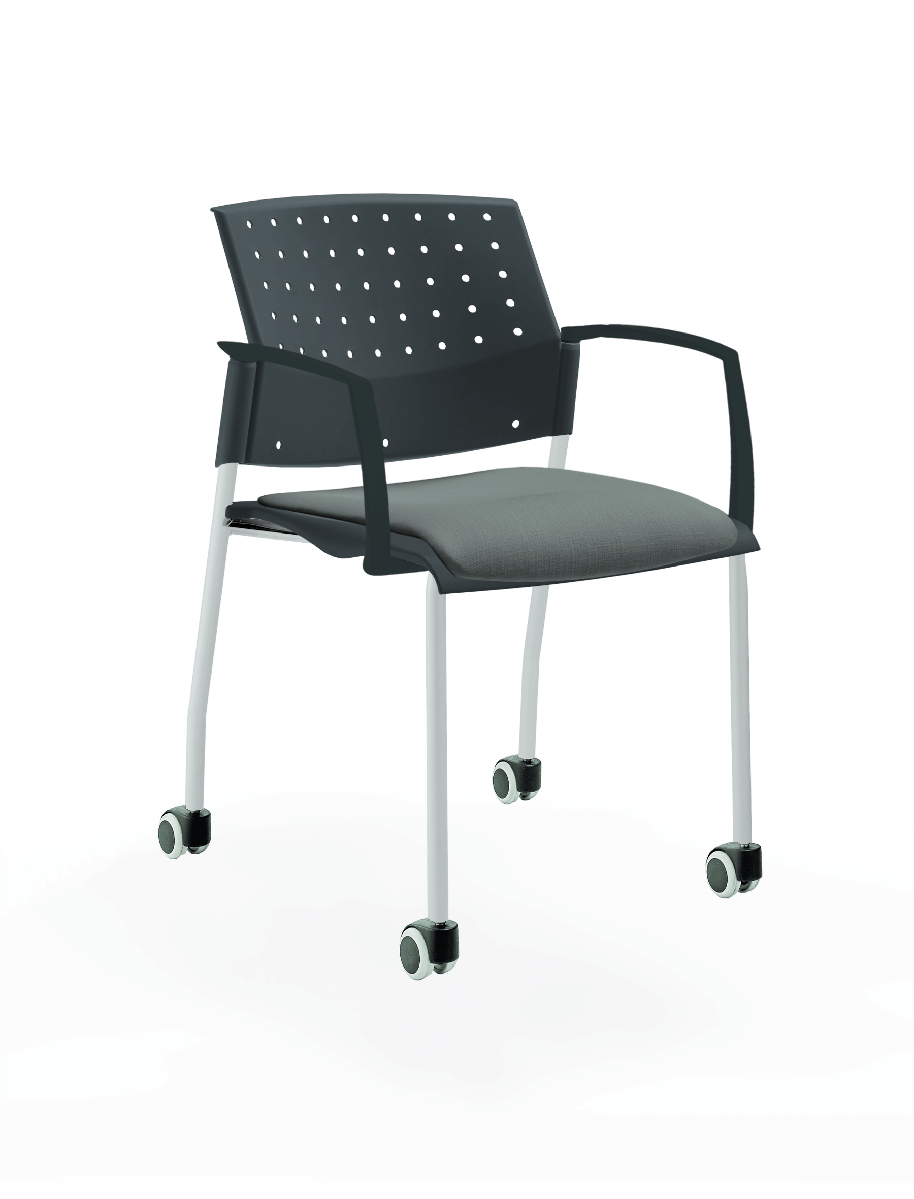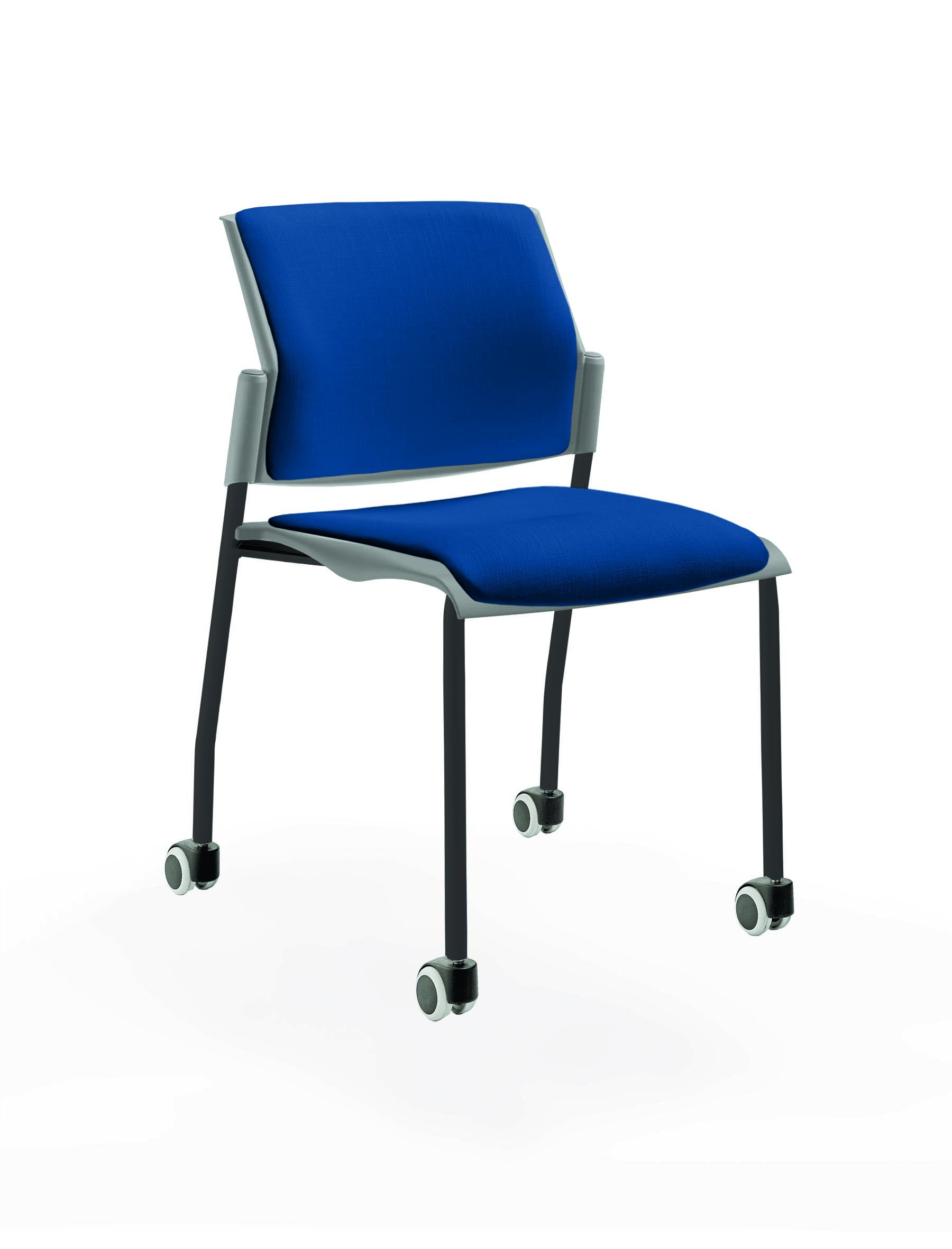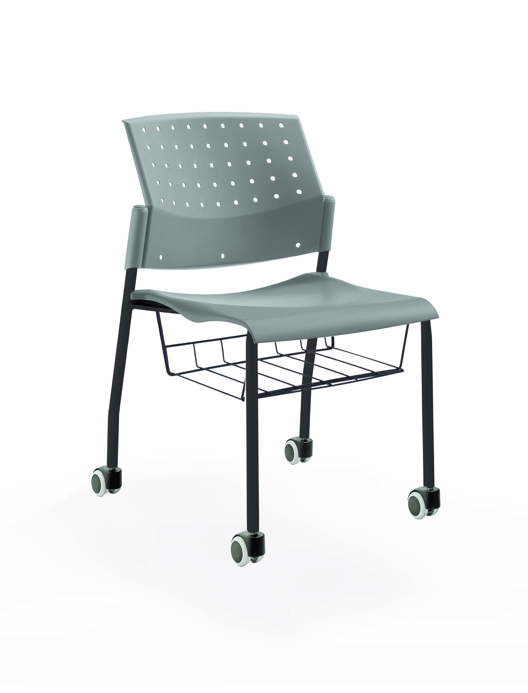 База: 4-ноги с колесами, из стальной трубы, диаметр 22 мм, толщина металла 1,5 мм. Каркас сварной. Особенность каркаса: каркас имеет Х-образную форму под сиденьем. Стул имеет 4 пластиковых колеса, d=50мм.