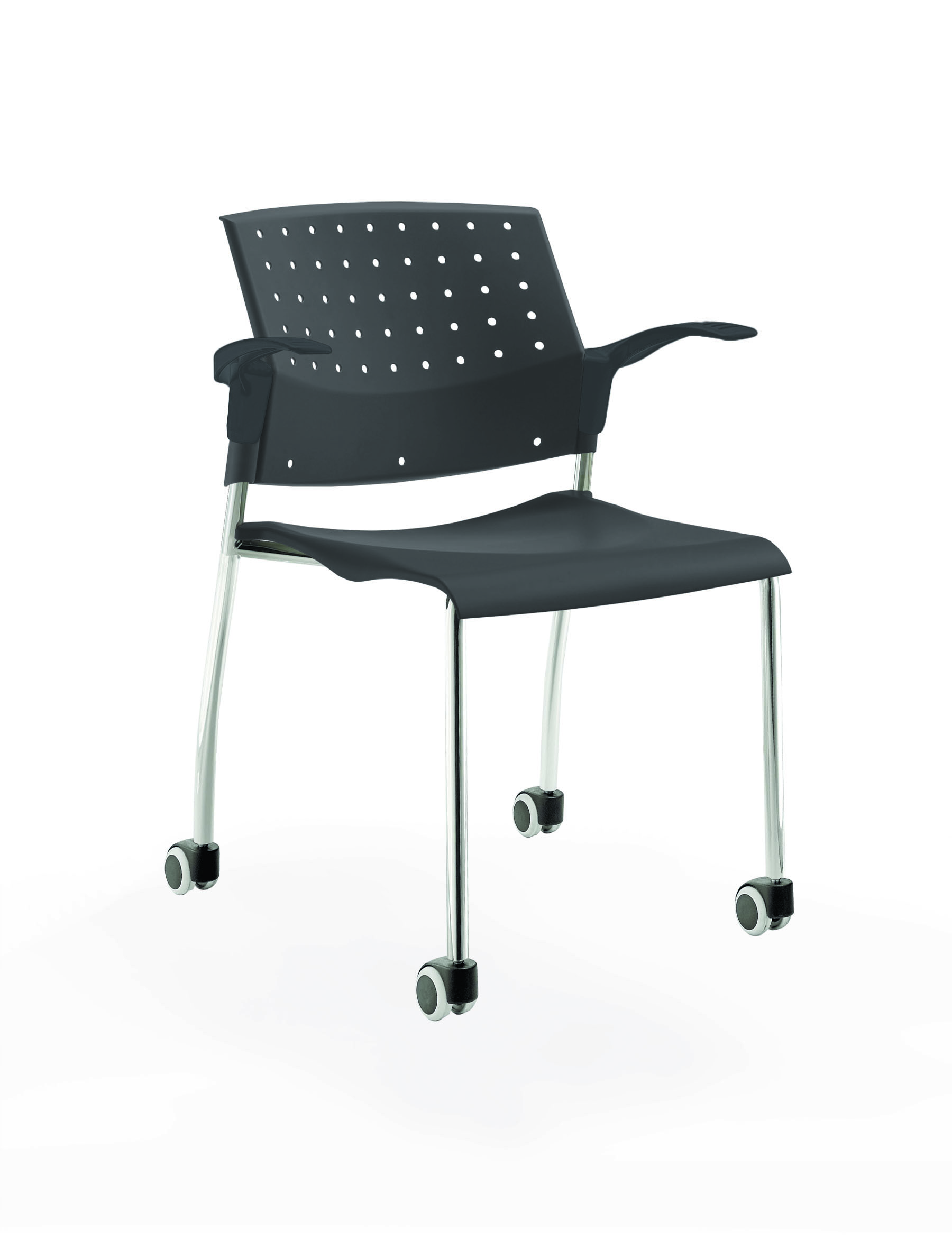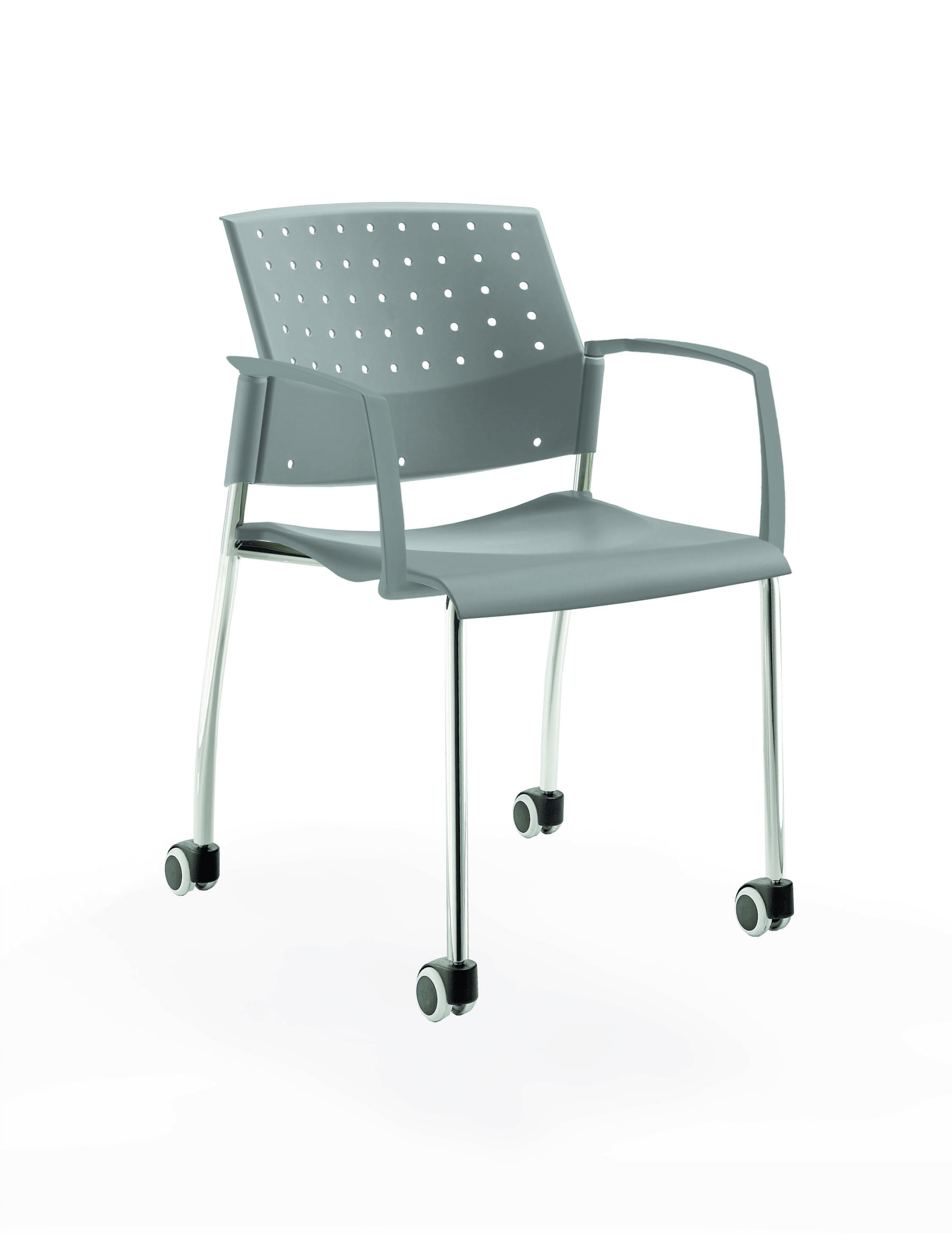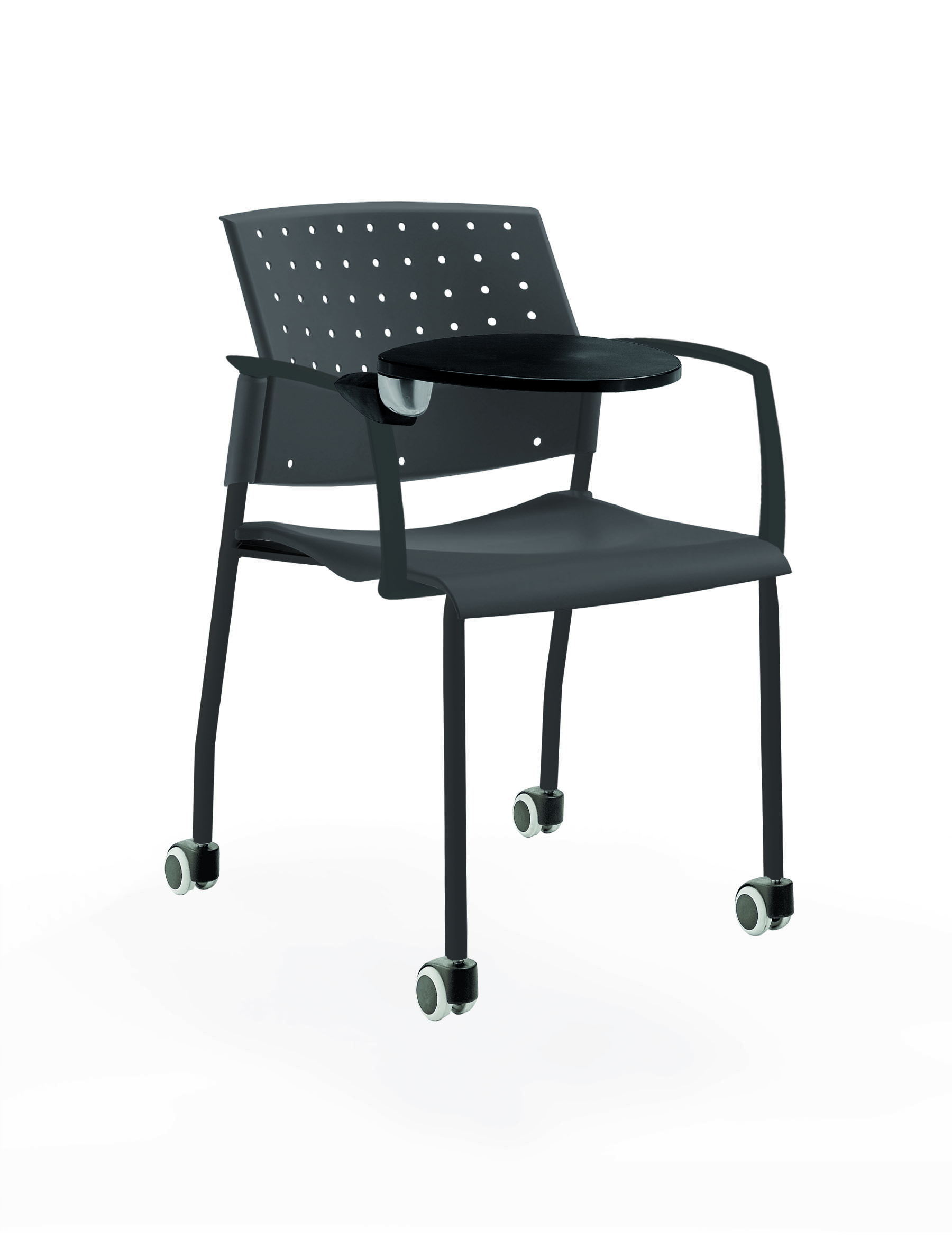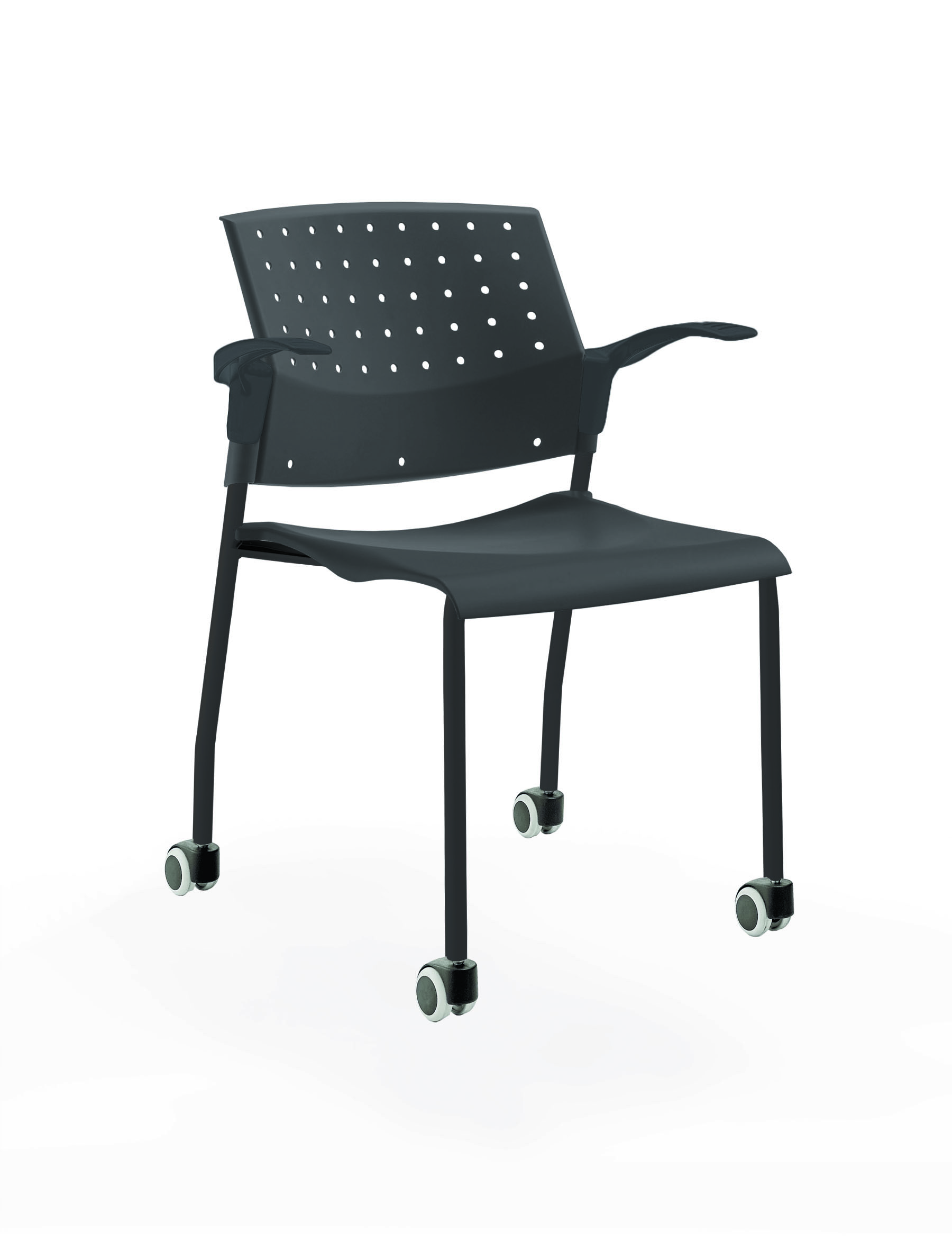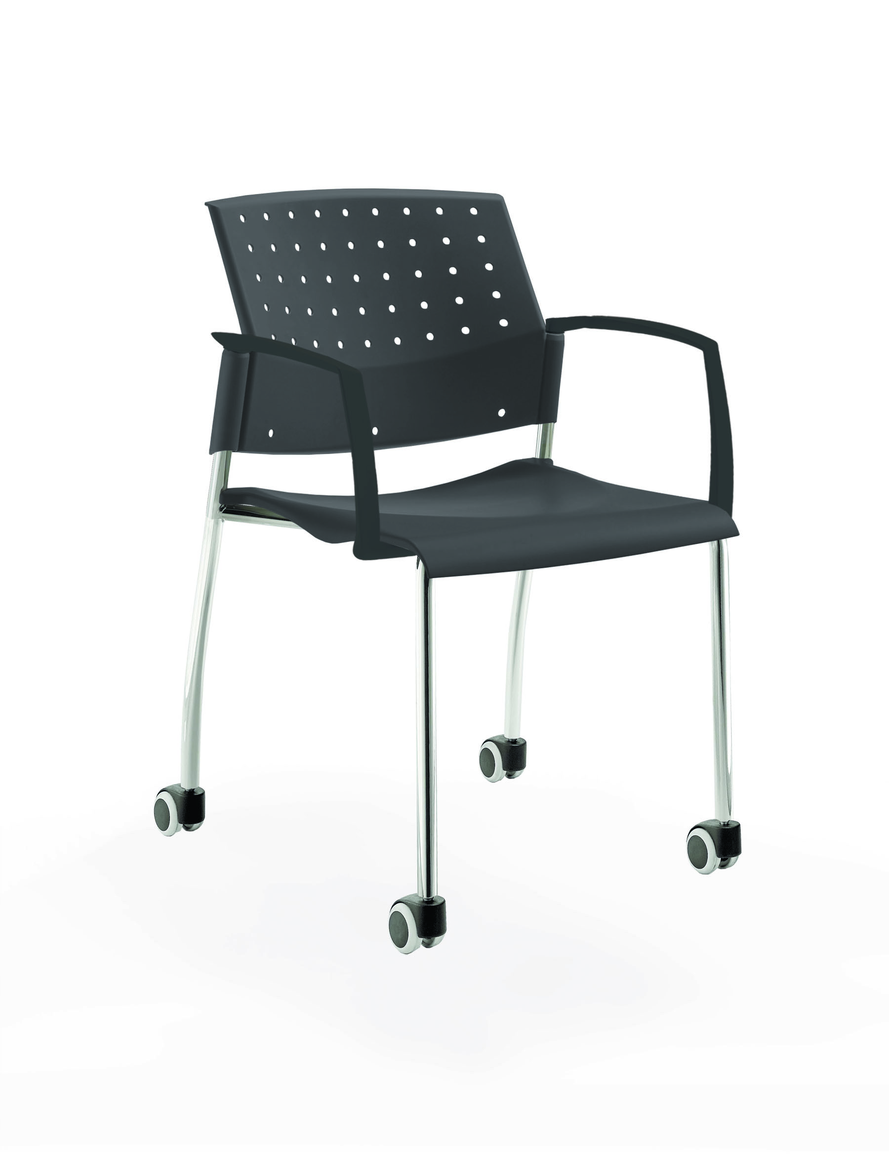 Спинка анатомической формы с поясничным прогибом. Ширина спинки 430мм, высота спинки 315 мм. Пластик спинки имеет перфорацию, диаметр отверстия 9 мм. Сидение имеет анатомическую форму с закруглениями на передней и боковых частей, которые предотвращают нарушения кровообращения. Ширина сидения 430 мм, глубина 430 мм. Спинка и сидение полипропилен.