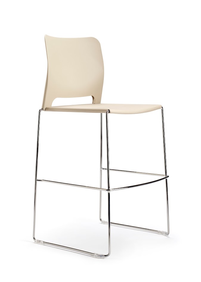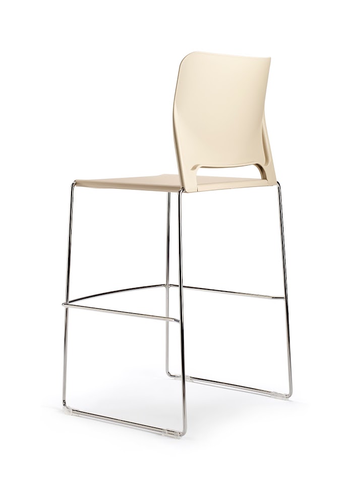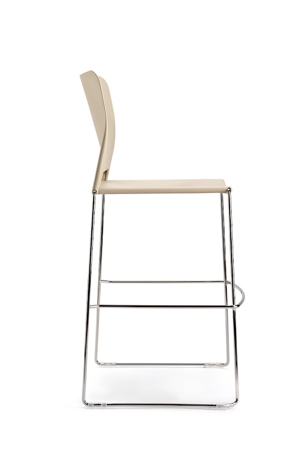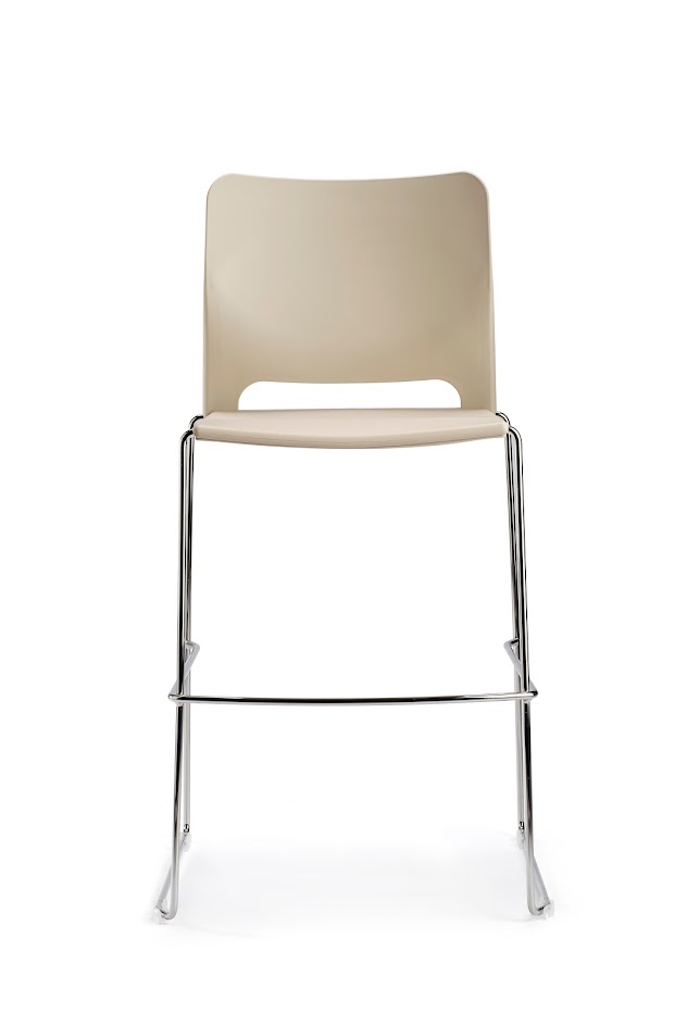 Сиденье и спинка из полипропилена. Сиденье фиксируется на каркасе с помощью подседельной крышки, которая крепится к сиденью 9-ю саморезами. Подседельная крышка закрывает нижнюю часть каркаса и защищает, при штабелировании, нижний стул от повреждений. Спинка надевается на штыри каркаса и фиксируется на нем специальными выступами сидения.
