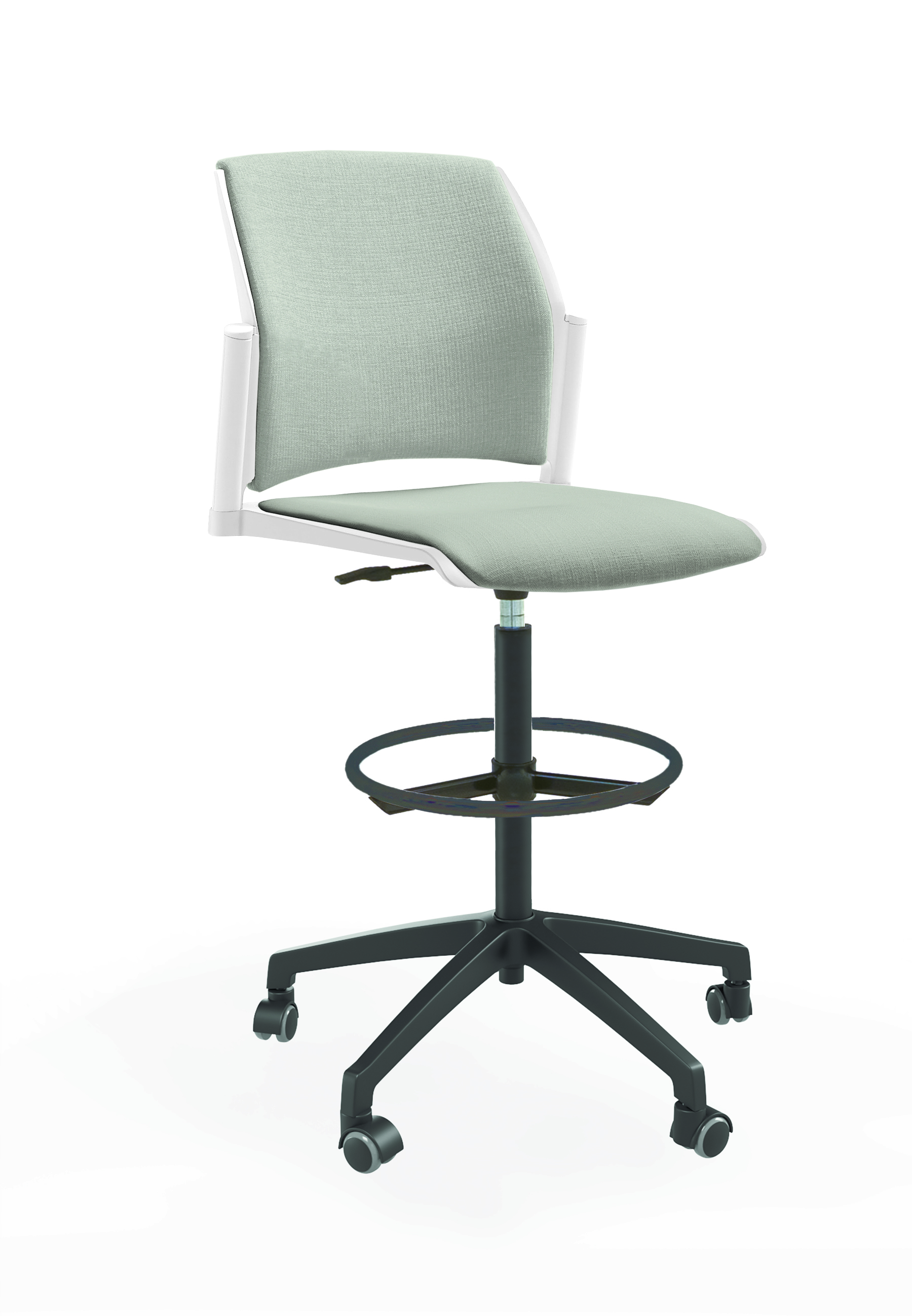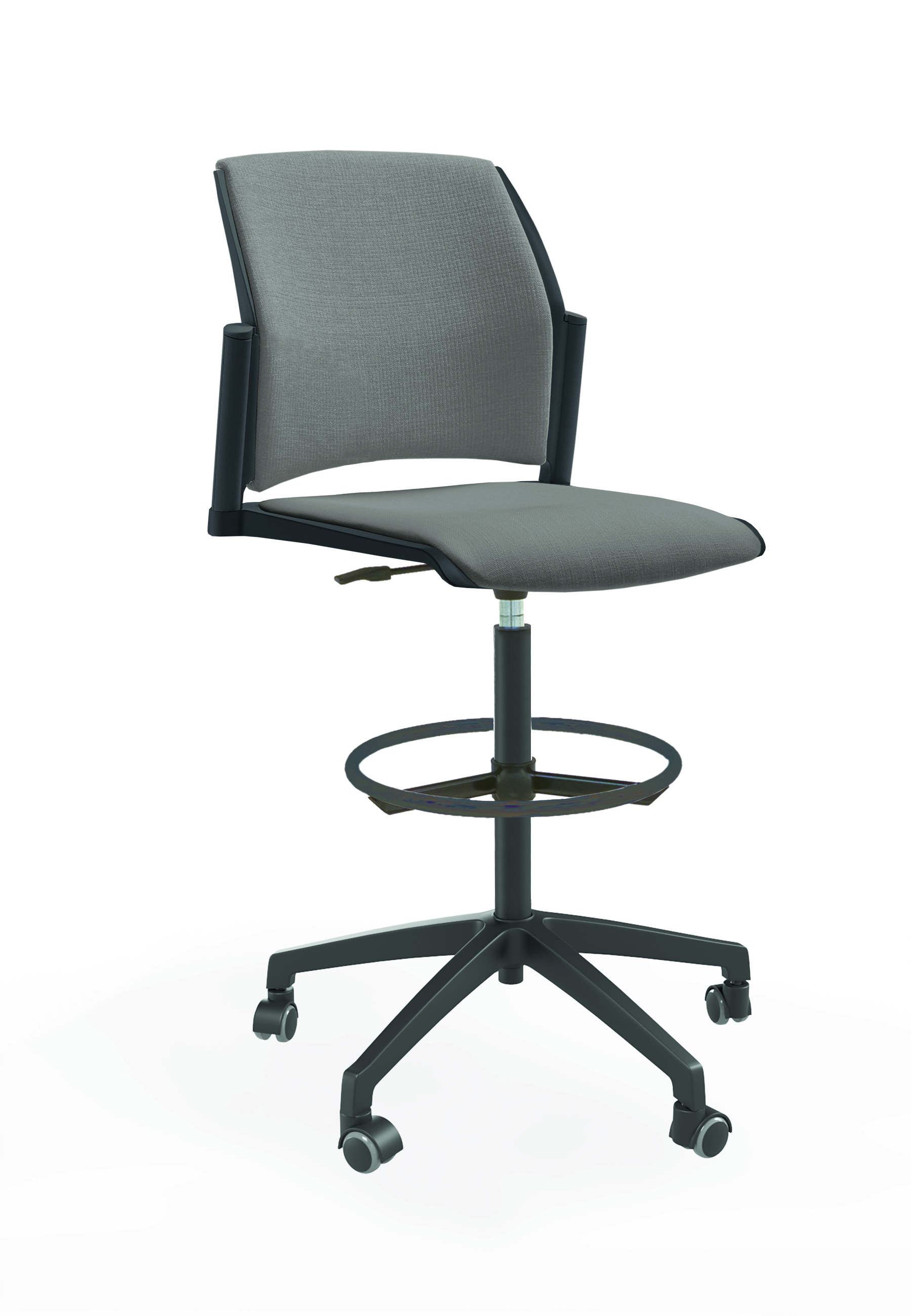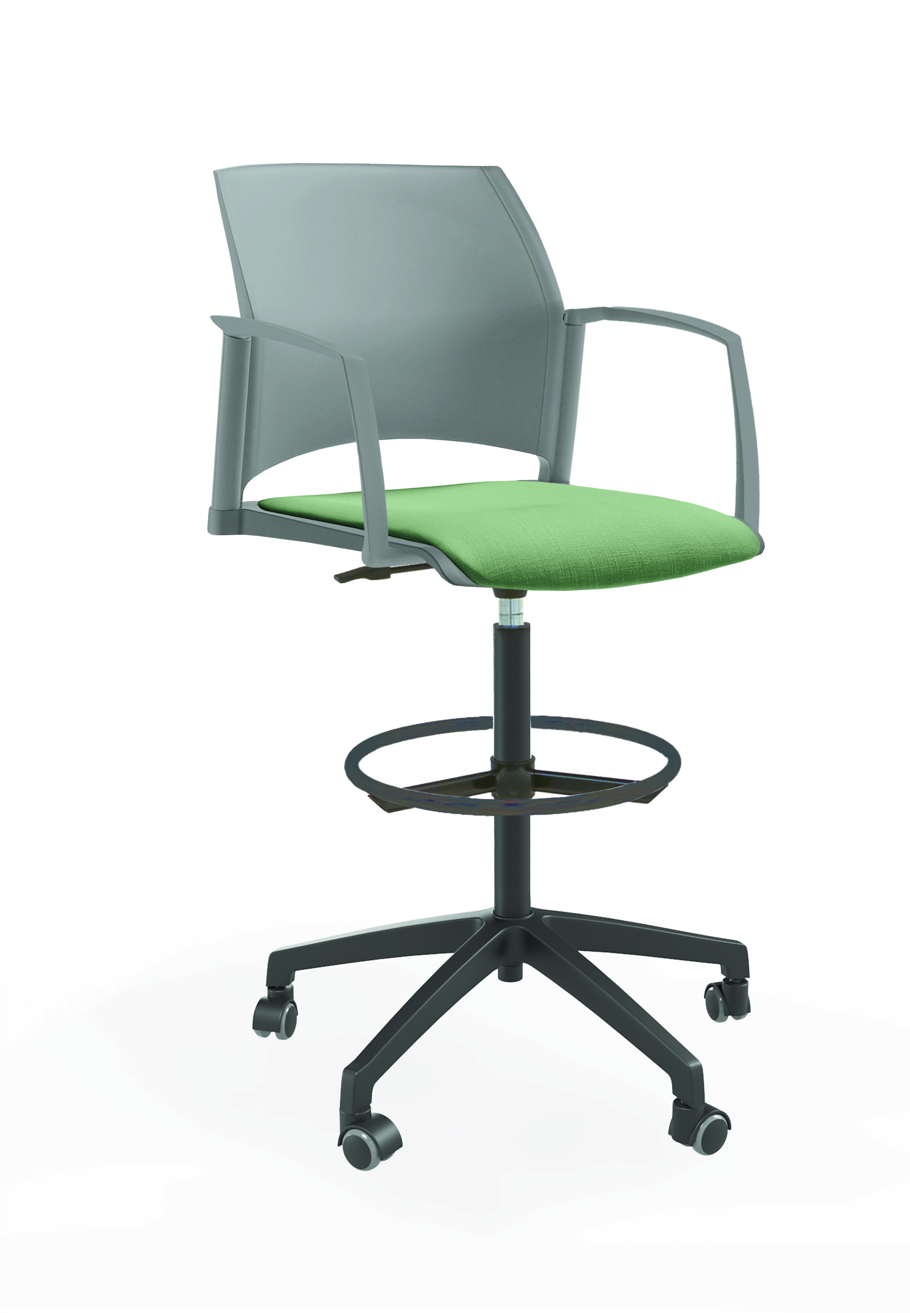 Спинка анатомической формы с поясничным прогибом. Ширина спинки 435мм, высота спинки 400 мм. Сидение имеет анатомическую форму с закруглениями на передней и боковых частей, которые предотвращают нарушения кровообращения. Ширина сидения 443 мм, глубина 462 мм. Спинка и сидение выполнены из армированного полипропилена. Спинка комплектуется парой декоративных заглушек. Пластик сидения имеет приливы, которые одеваются на трубы каркаса для спинки, спинка одевается до сидения, не оставляя зазора.