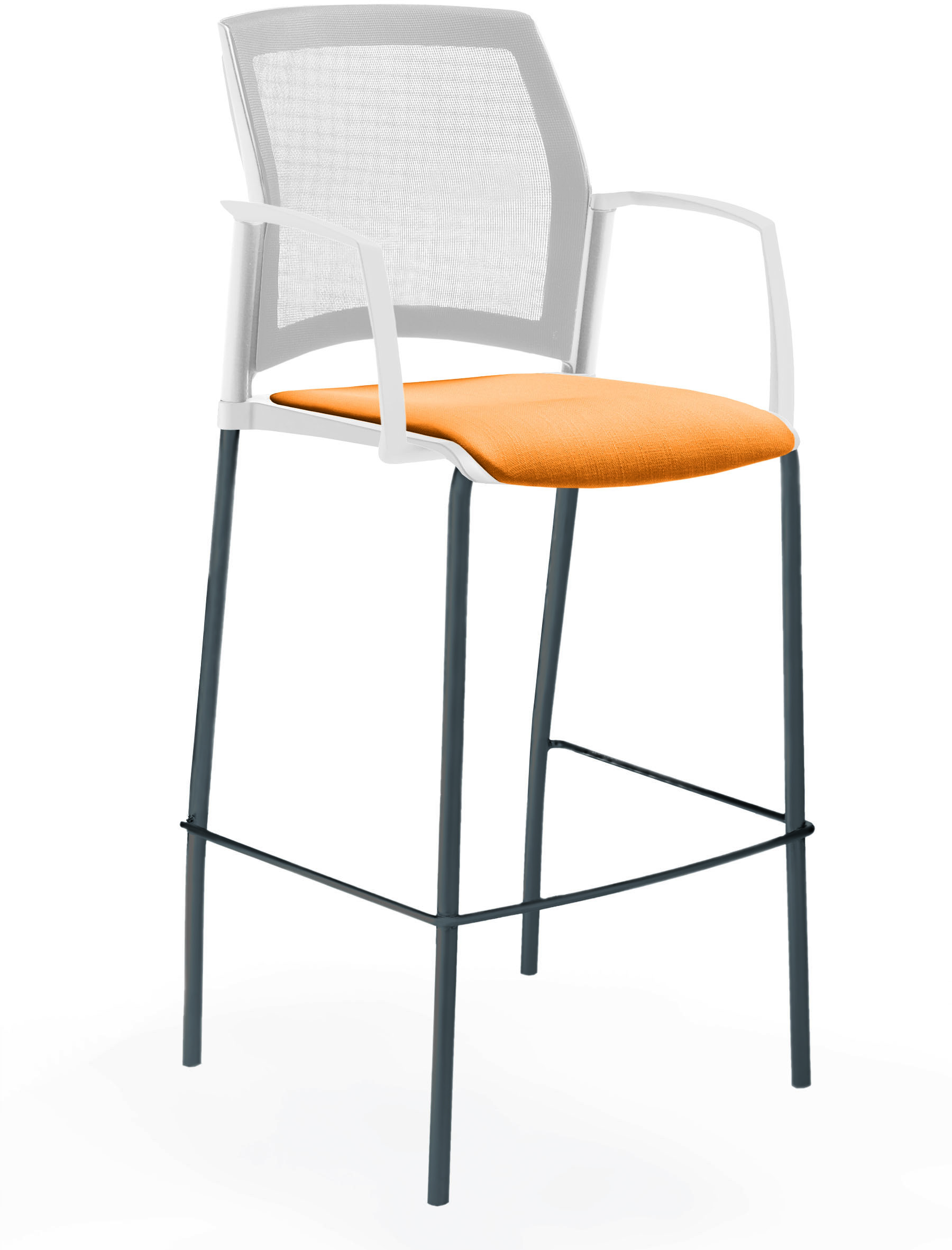 Спинка состоит из пластиковой рамы и сетки. Сидение имеет анатомическую форму с закруглениями на передней и боковых частей, которые предотвращают нарушения кровообращения. Ширина сидения 443 мм, глубина 462 мм. Сидение выполнено из армированного полипропилена. Спинка комплектуется парой декоративных заглушек. Пластик сидения имеет приливы, которые одеваются на трубы каркаса для спинки, спинка одевается до сидения, не оставляя зазора