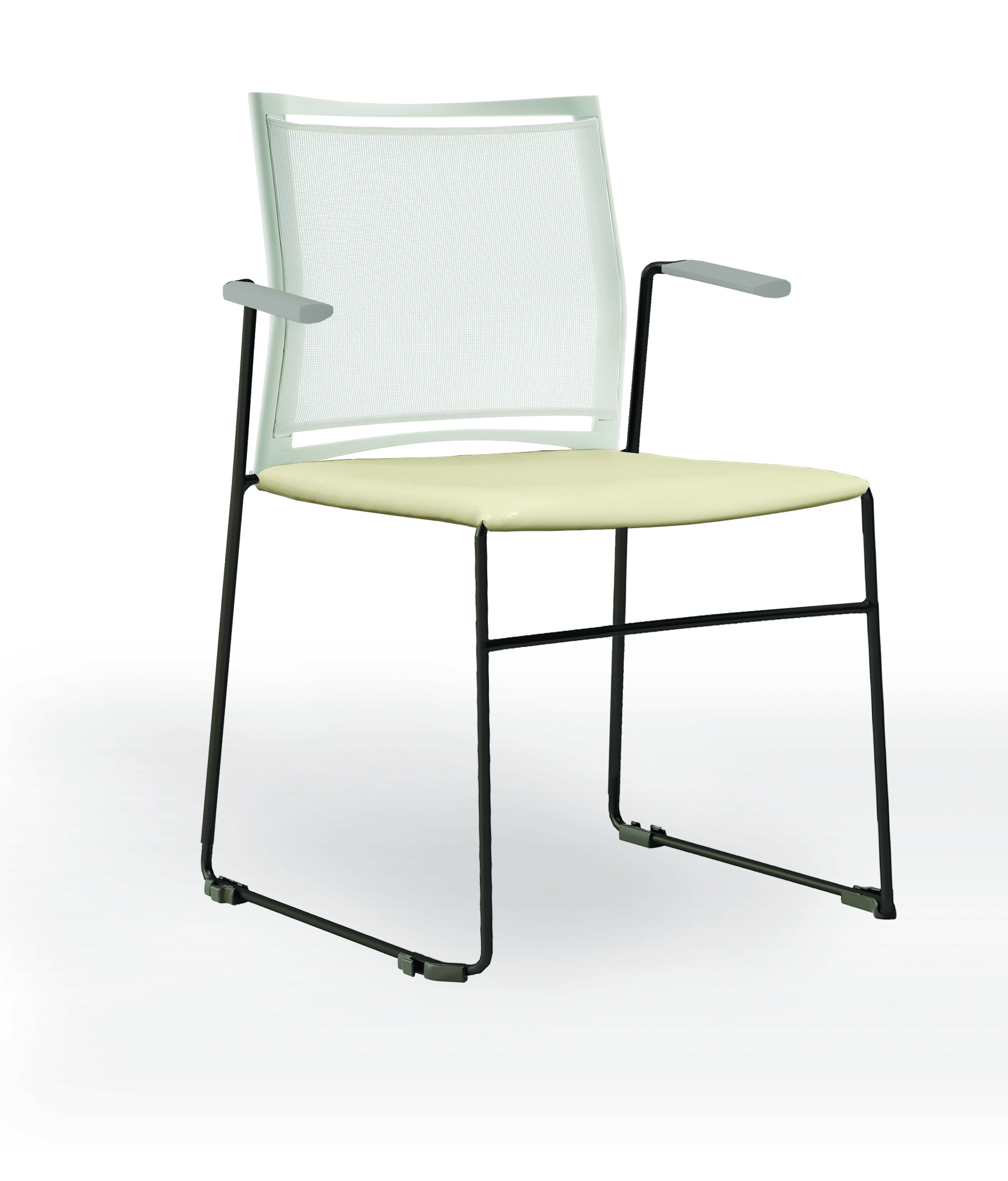 Сиденье из полипропилена, спинка состоит из пластиковой рамы и сетки. Сиденье фиксируется на каркасе с помощью подседельной крышки, которая крепится к сиденью 9-ю саморезами. Ширина сидения 445 мм, глубина - 430 мм, высота от пола до сидения - 445мм. Подседельная крышка закрывает нижнюю часть каркаса и защищает, при штабелировании, нижний стул от повреждений. Спинка надевается на штыри каркаса и фиксируется на нем специальными выступами сидения. Ширина спинки 470 мм, высота - 390 мм.